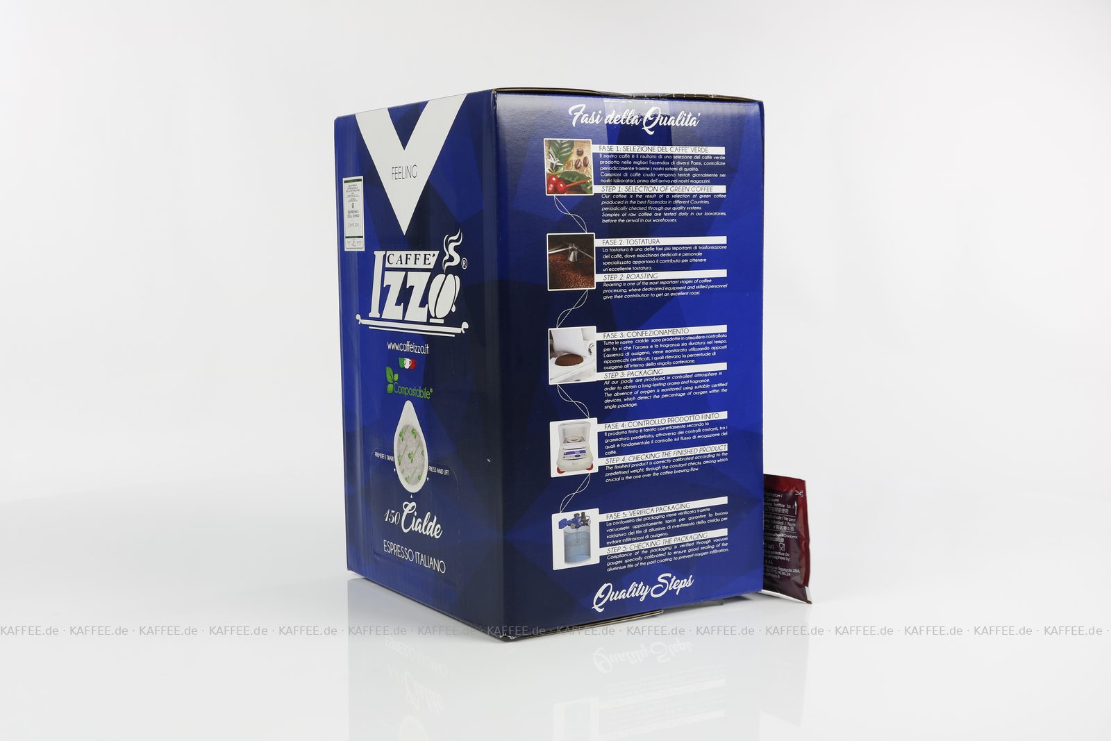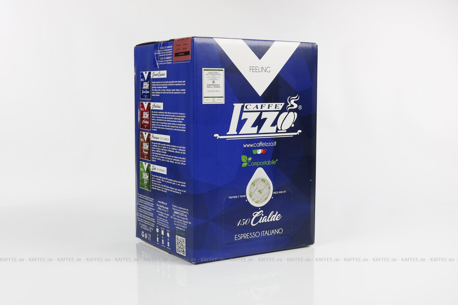 Der Erfolg des Caffè Izzo basiert auf den beiden Hauptröstungen Gold und Silber und ist damit die perfekte Kombination aus unverwechselbaren Kaffeegeschmack und italienischer Lässigkeit. Das Markenzeichen, der auf handwerklicher Tradition basierenden Rösterei Izzo, ist ihre dunkle Röstung mit öligem Glanz, der durch eine lange schonende Röstzeit erreicht wird. Ein weiteres Erkennungszeichen sind die großen 1 kg Dosen, in denen die Kaffees 36 Monate haltbar sind und sich auf die Mühle setzen lassen.