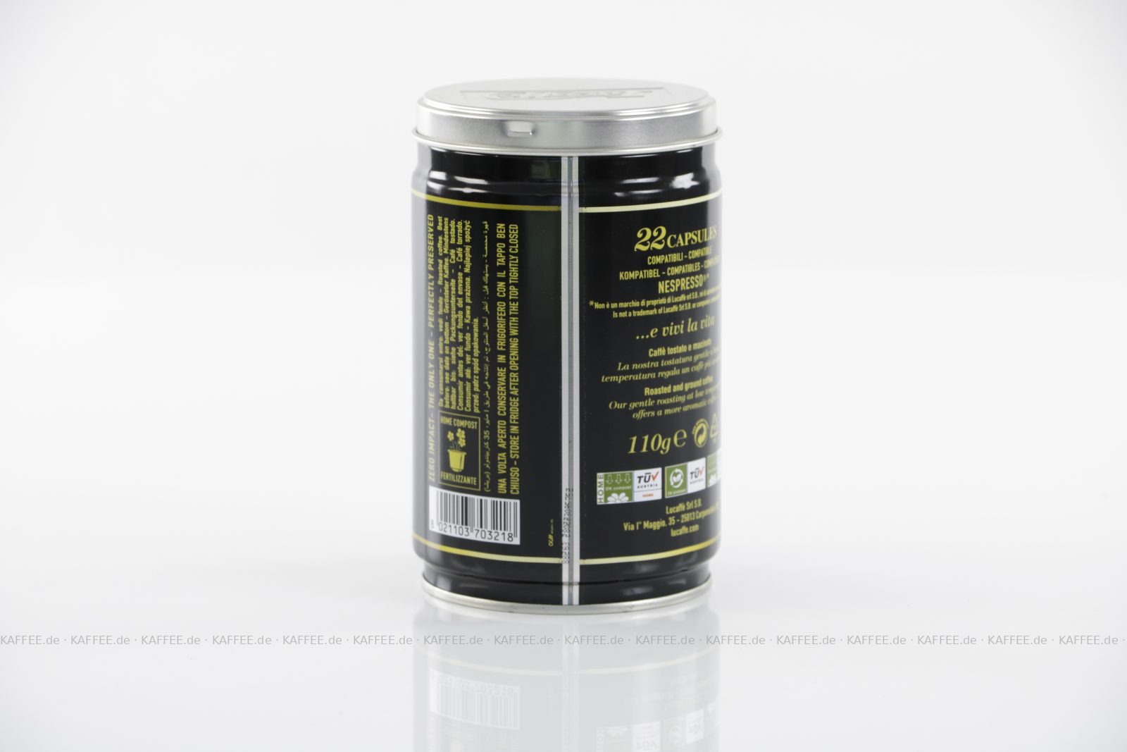 12 Dosen mit je 22 Kaffeekapseln für Nespresso® (264 Stück) je 5 g gemahlen, Maschinen, gemahlen, Gesamtinhalt 1,32 kg pro VPE // Nespresso® ist eine Marke der Nestlé Nespresso AG., EAN-Code: 8021103703218