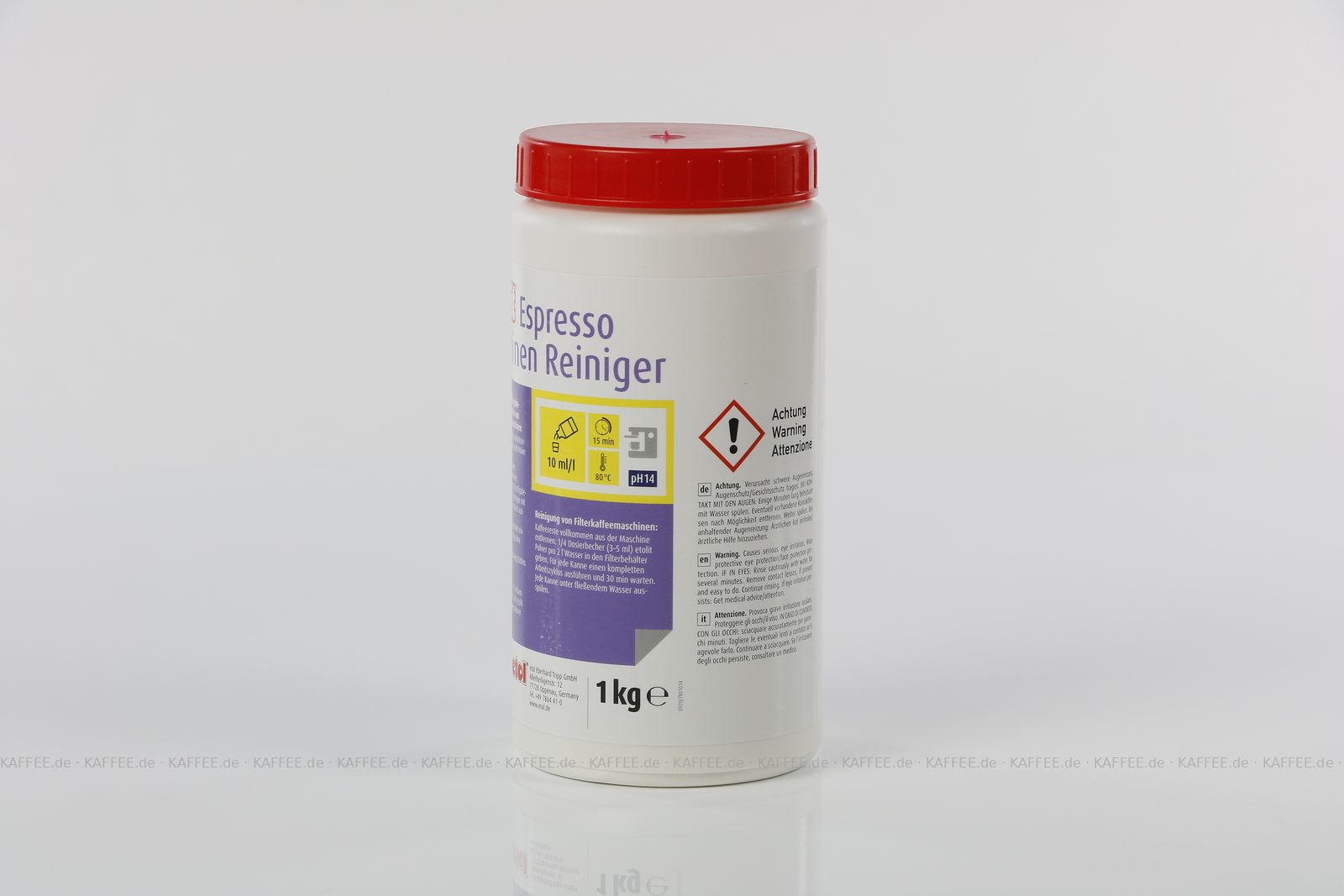 Brühgruppenreiniger Pulver entfernt Tee- und Kaffeeablagerungen, 6 Dosen je 1 kg pro VPE, Gesamtinhalt 6 kg pro VPE, EAN-Code: 2709000022002