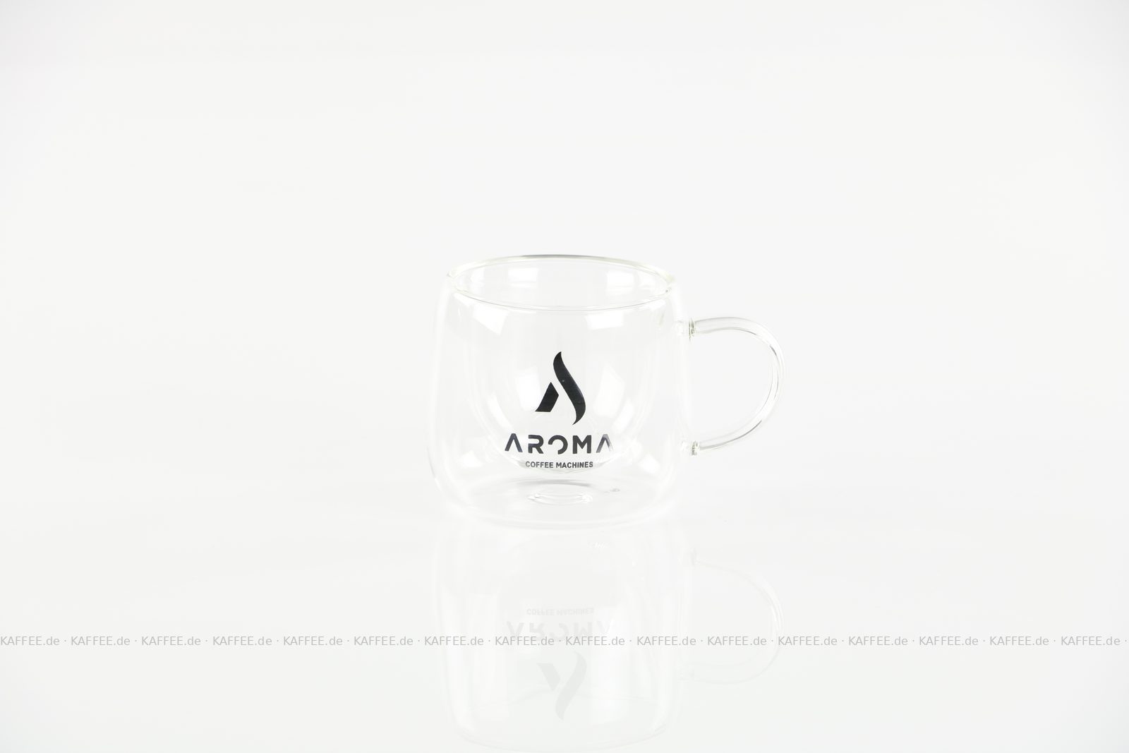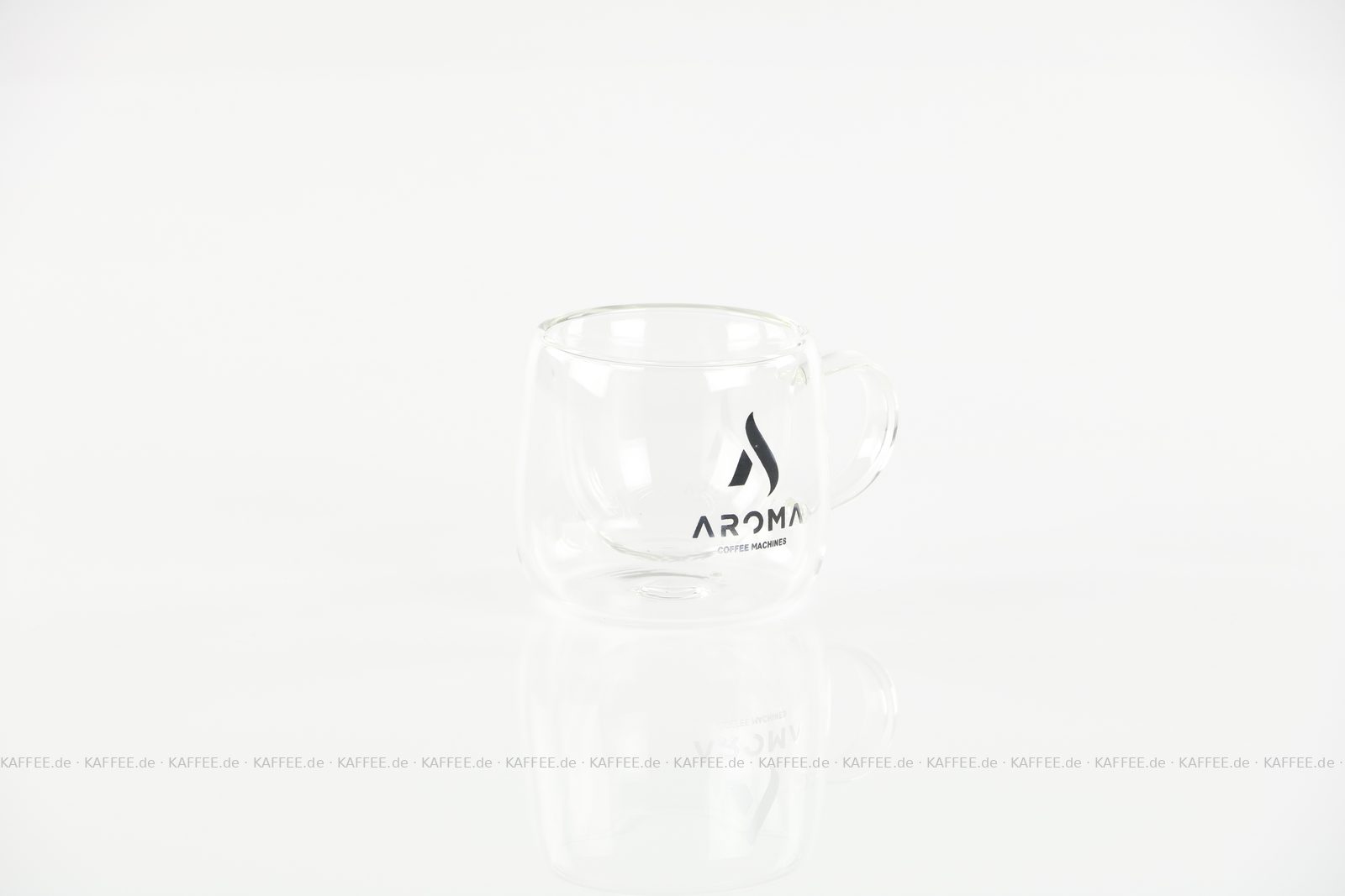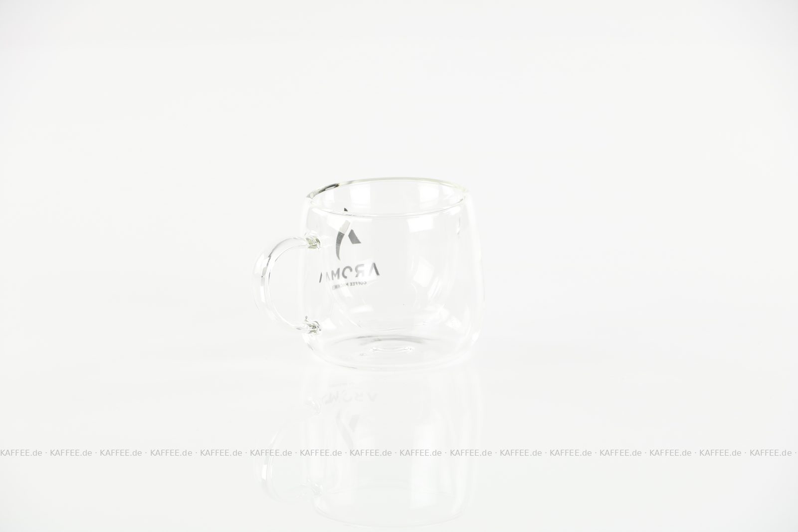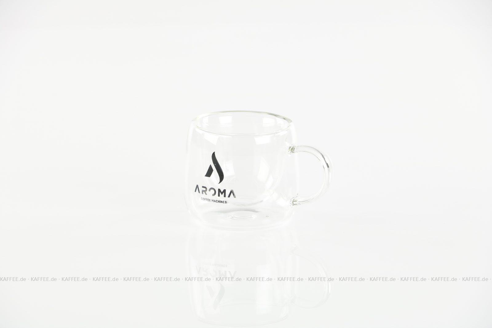 Doppelwandige Glastasse (Termoglas) mit AROMA-Logo und ca. 80 ml Fassungsvermögen, 1 Tasse pro VPE, EAN-Code: 2709000026024