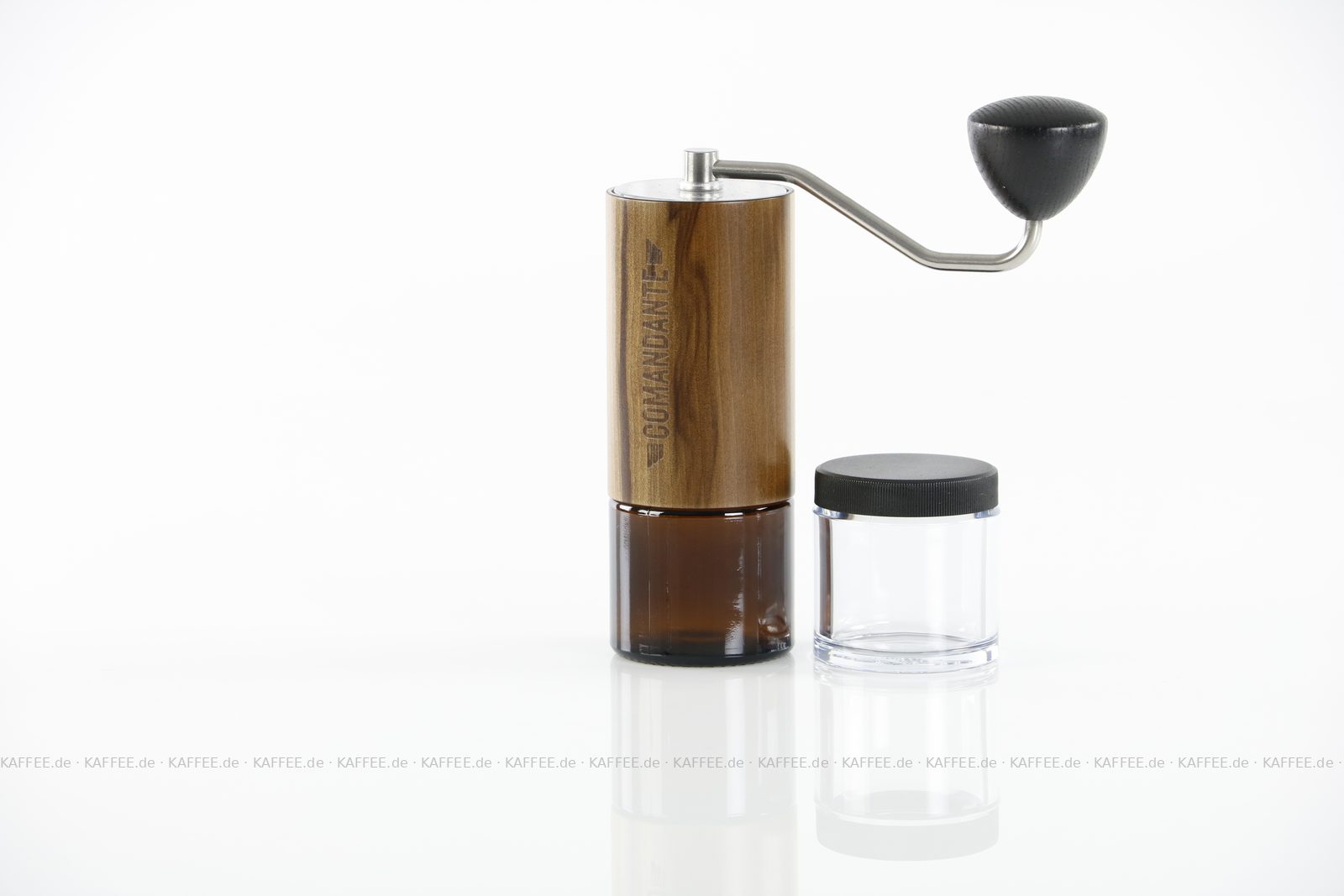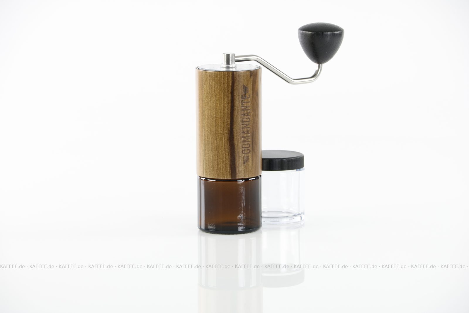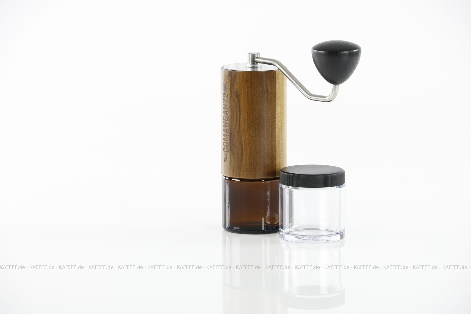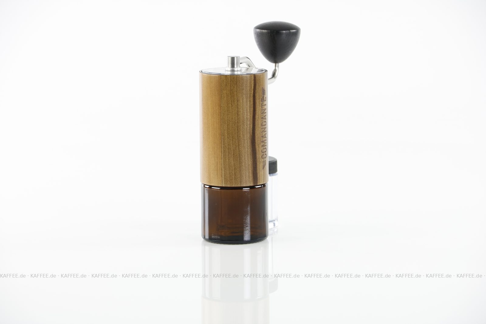 Material "Liquid Amber", sehr hochwertige Handmühle aus deutscher Produktion inkl. zwei Auffangbehälter Braunglas bzw. transparentem Polymer-Glas (Tritan), EAN-Code: 4260113437483