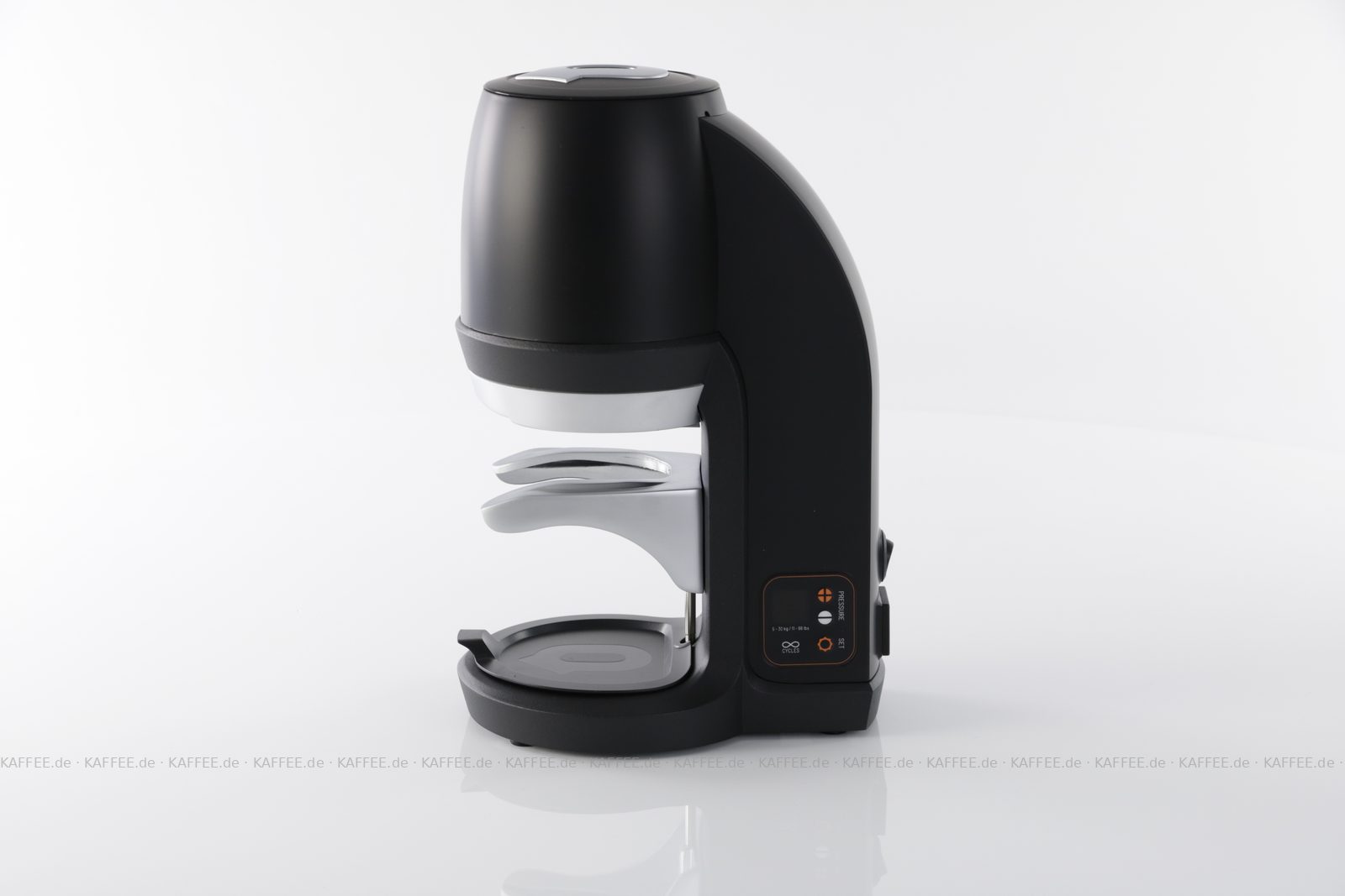 Elektrischer Tamper mit 58.3 mm Durchmesser für Profis (andere Durchmesser lieferbar), geeignet für alle Siebträger (einfach, doppelt), Gehäusefarbe schwarz (auch in anderen Farben erhältlich), Anpressdruck 5 bis 30 kg (1 kg Stufen), 1,3 Sekunden pro Vorgang, Kapazität bis zu 25 kg Kaffee pro Woche, Garantie: 2 Jahre bei max. 300.000 Bezügen, Gewicht: 3,5 kg, EAN-Code: 2709000028011