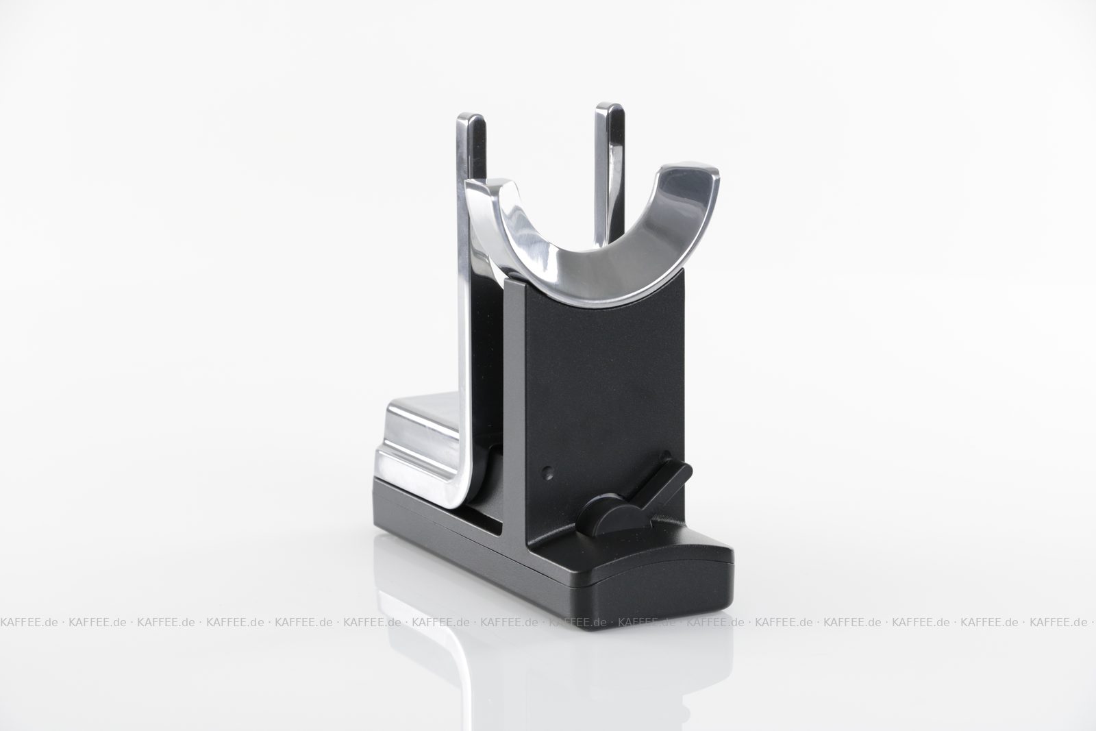Verstellbarer Siebträgerhalter, kann mit abnehmbarer Frontabdeckung ausgetauscht werden, Farbe schwarz (Jet Black, RAL 9005), EAN-Code: 2709000028257