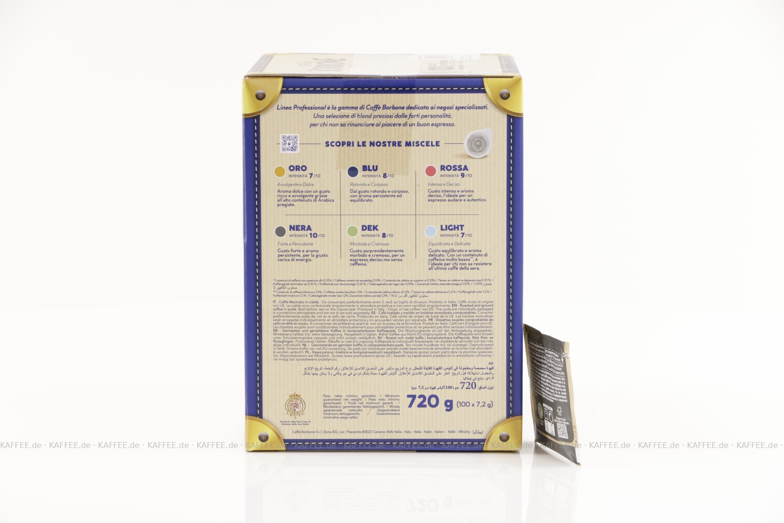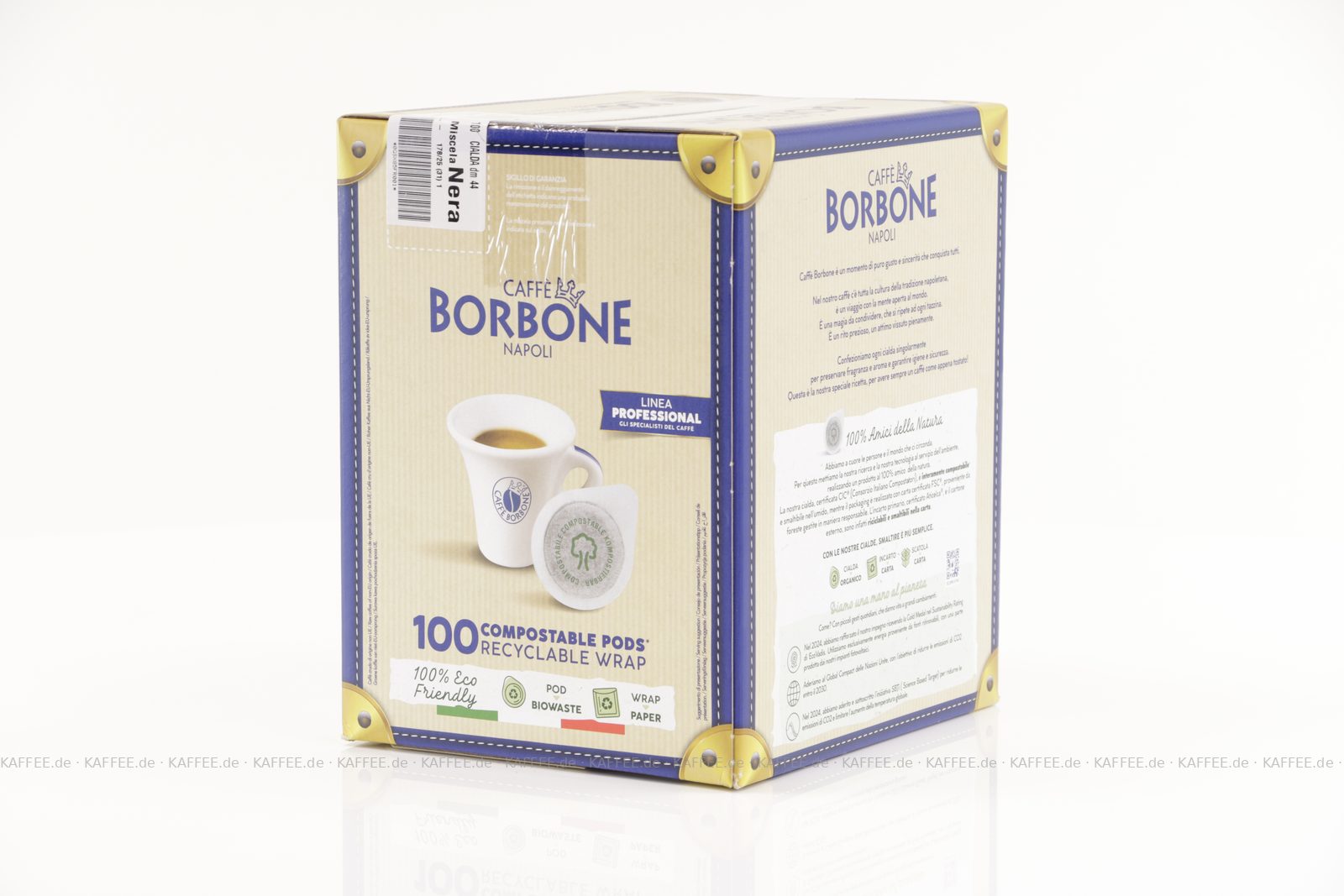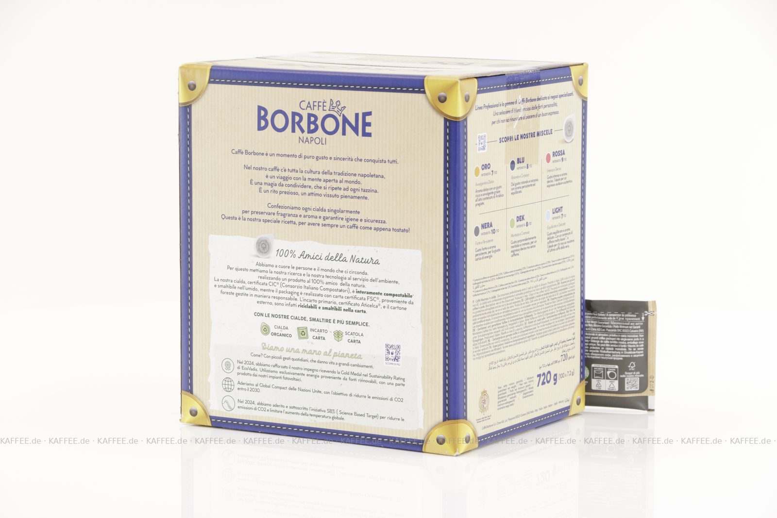 100 Pads je 7,2g pro VPE, gemahlen, ESE-Standard 44 mm, Gesamtinhalt 720 g pro VPE, EAN-Code: 8034028330537