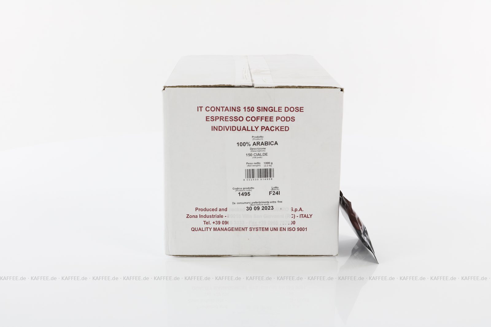 150 Pads je 6,70 g pro VPE, gemahlen, ESE-Standard 44 mm, Gesamtinhalt 1,005 kg pro VPE, EAN-Code: 8002530915092