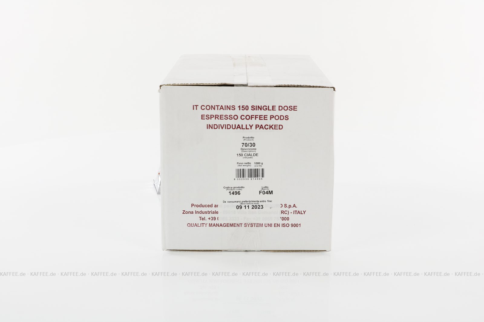 150 Pads je 6,70 g pro VPE, gemahlen, ESE-Standard 44 mm, Gesamtinhalt 1,005 kg pro VPE, EAN-Code: 8002530151629