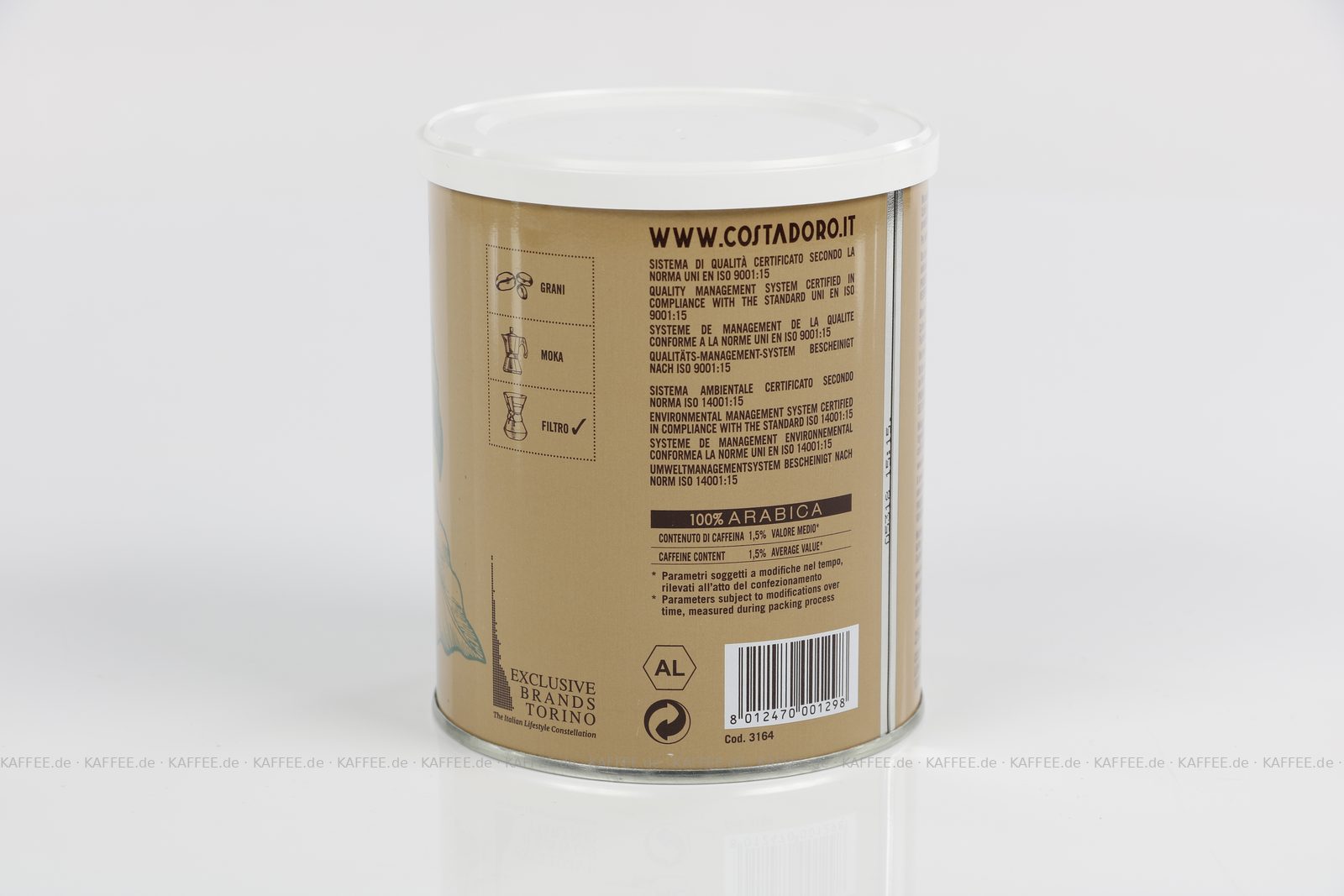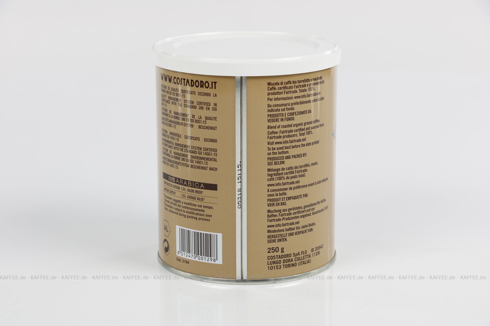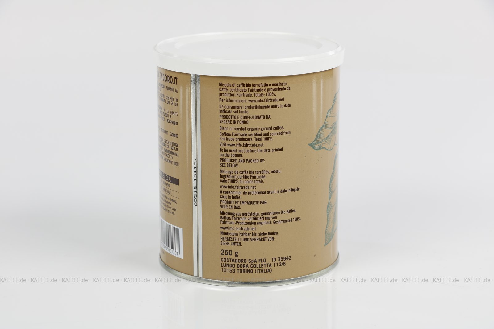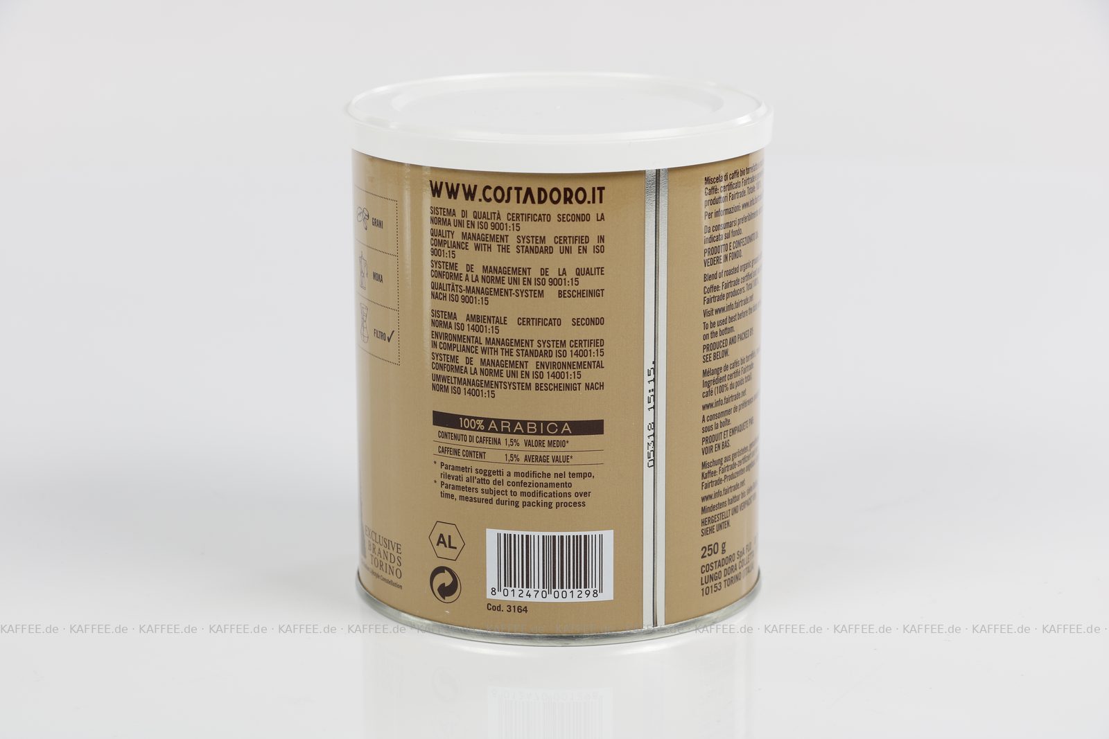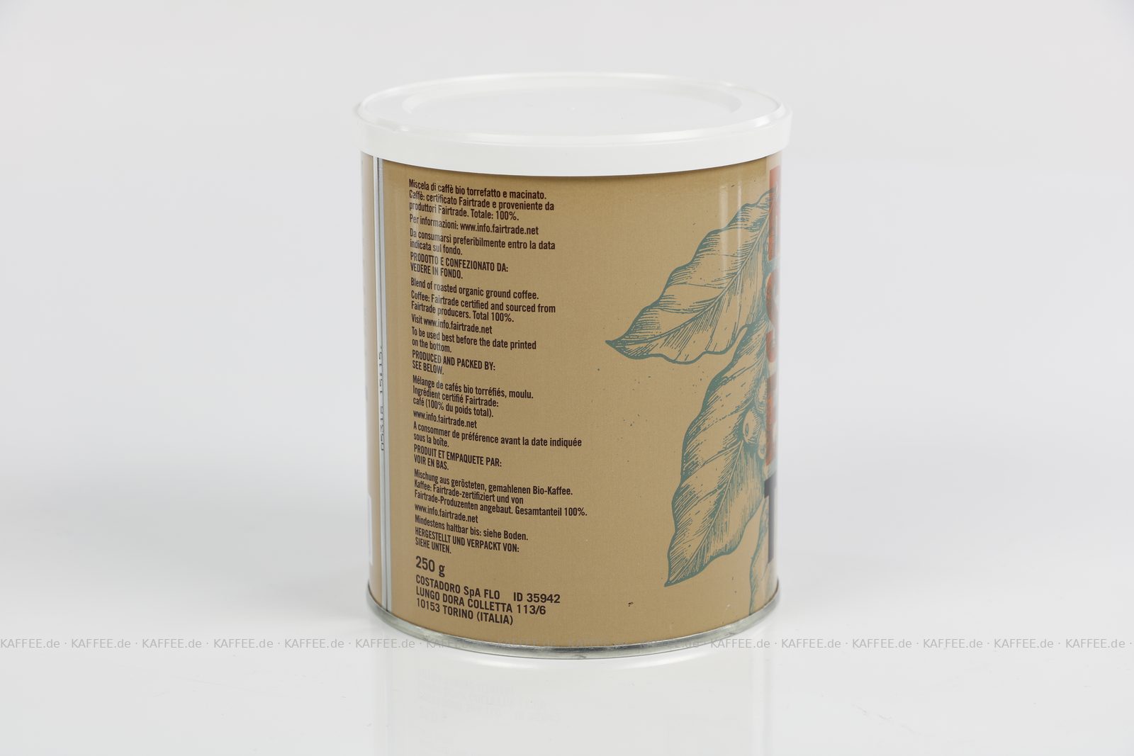 12 Dosen je 250 g pro VPE, gemahlen, Gesamtinhalt 3,00 kg pro VPE, EAN-Code: 8012470001298