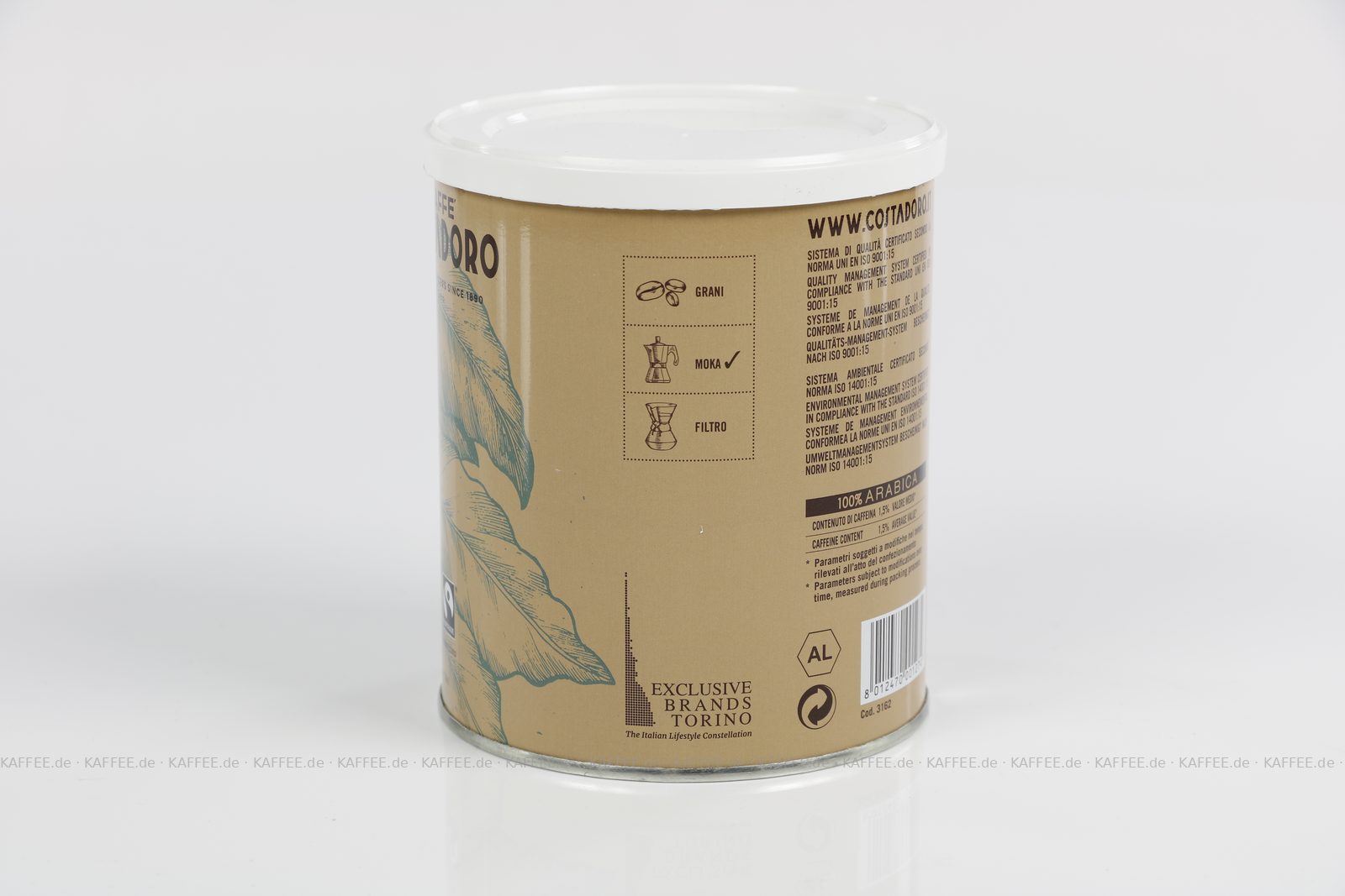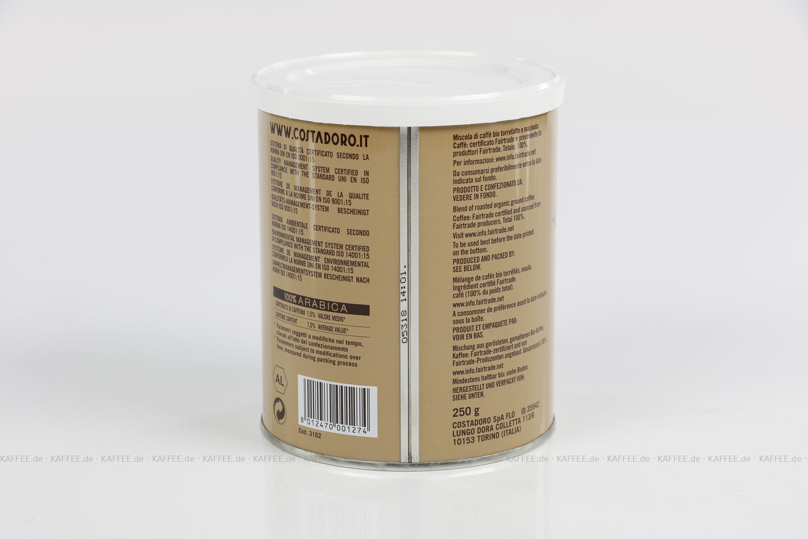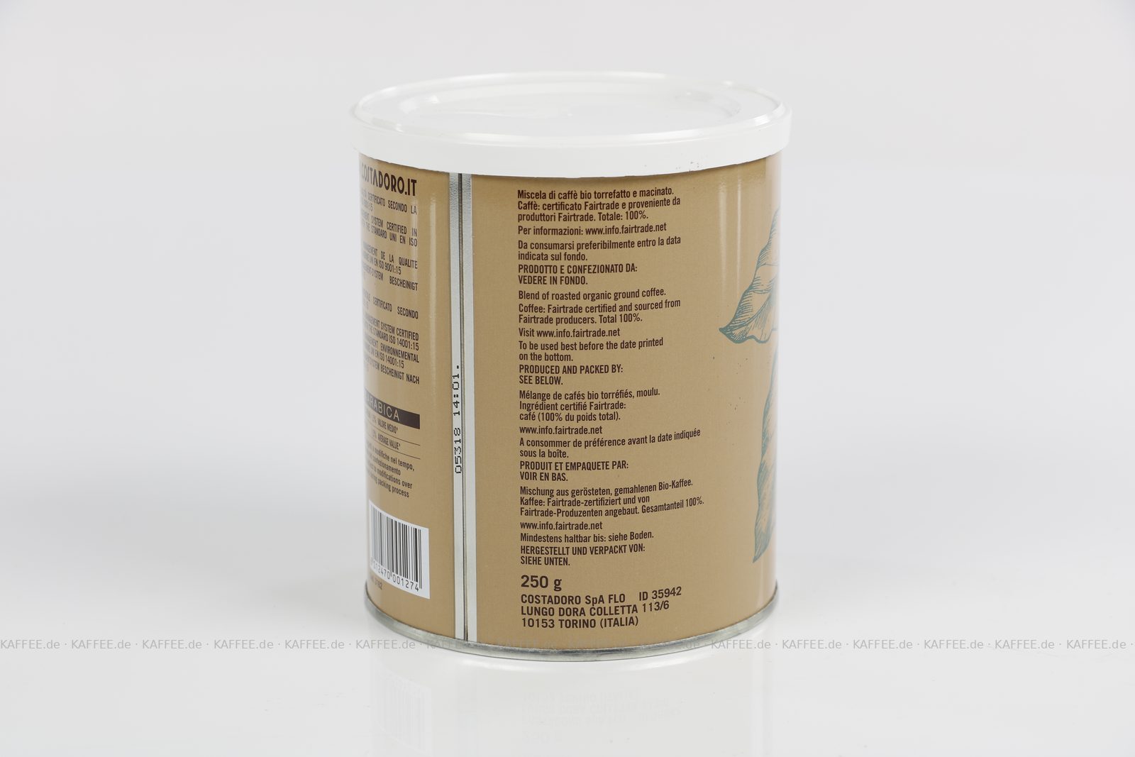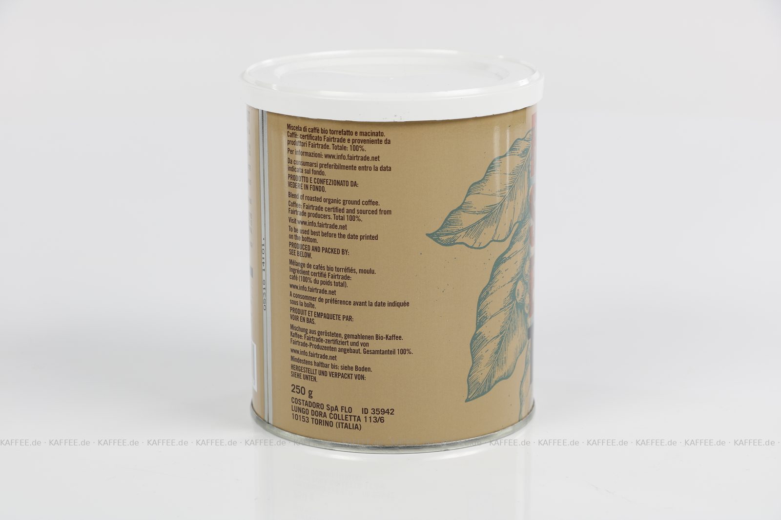 12 Dosen je 250 g pro VPE, gemahlen, Gesamtinhalt 3,00 kg pro VPE, EAN-Code: 8012470001274
