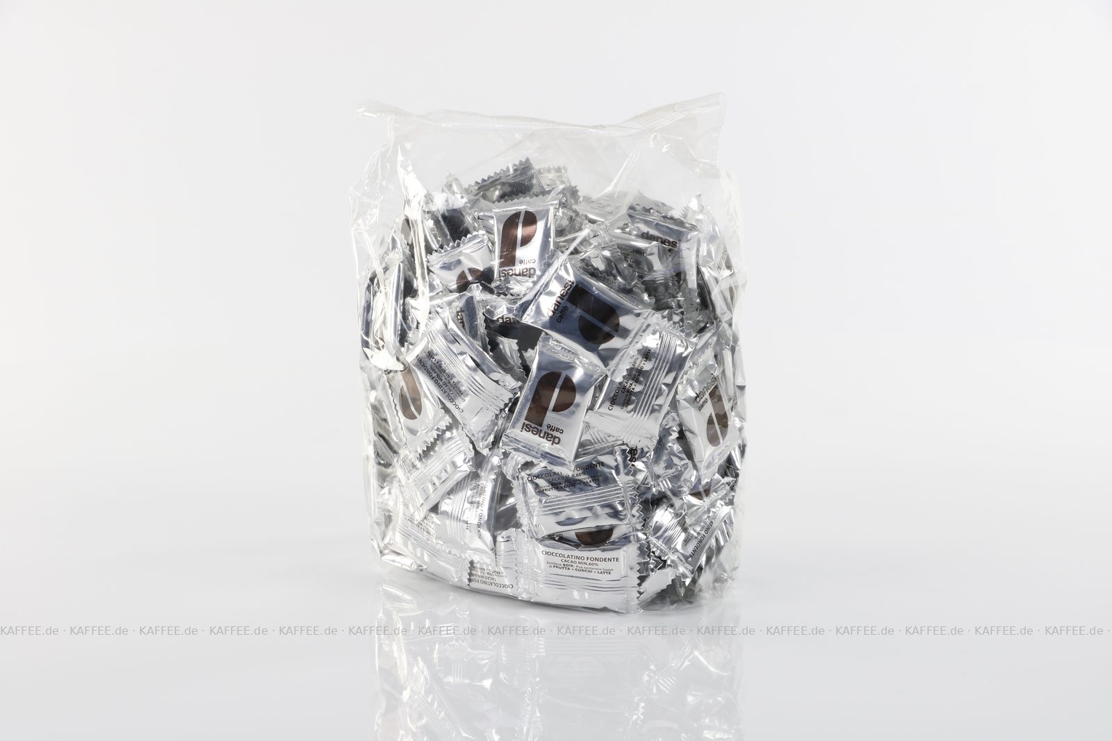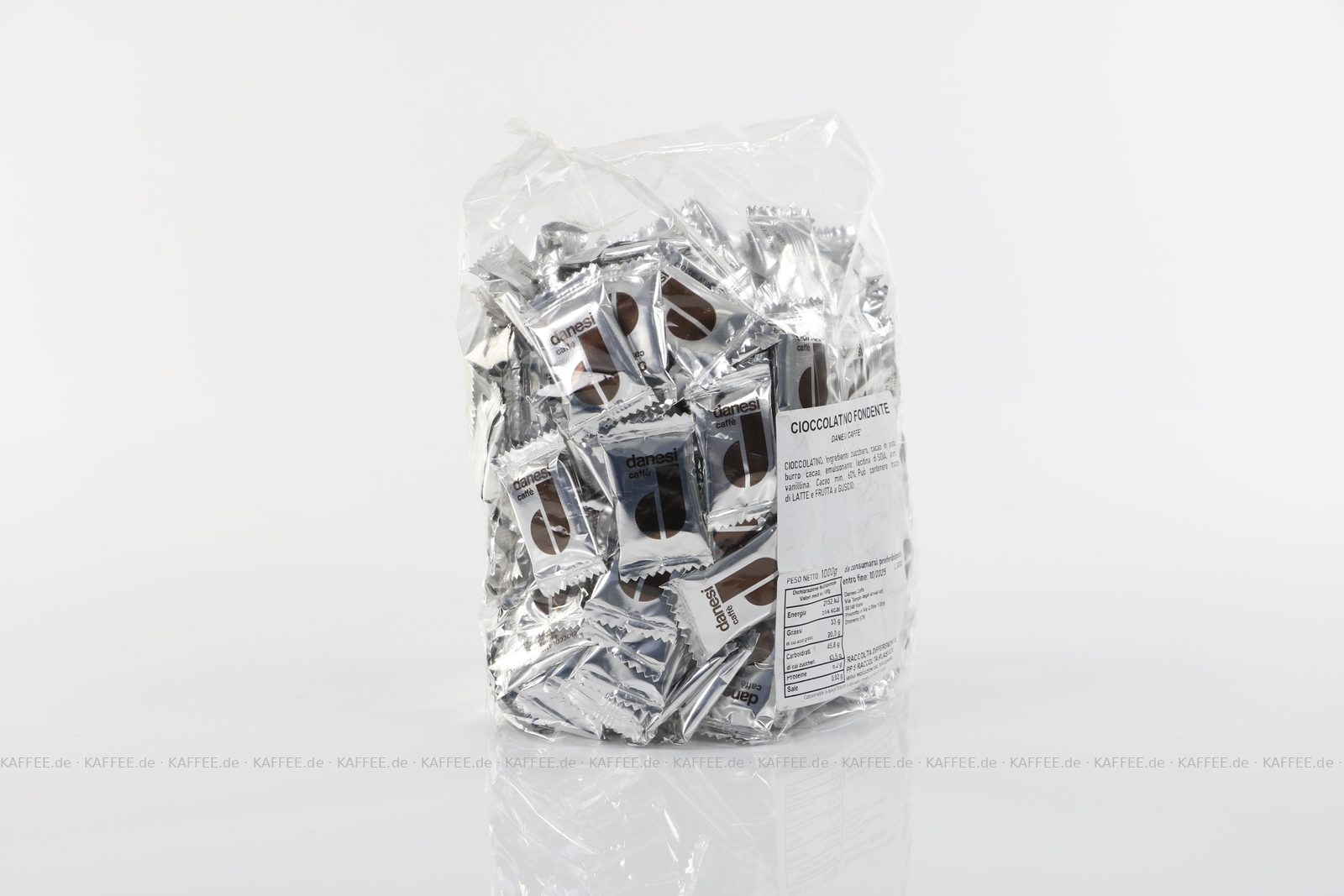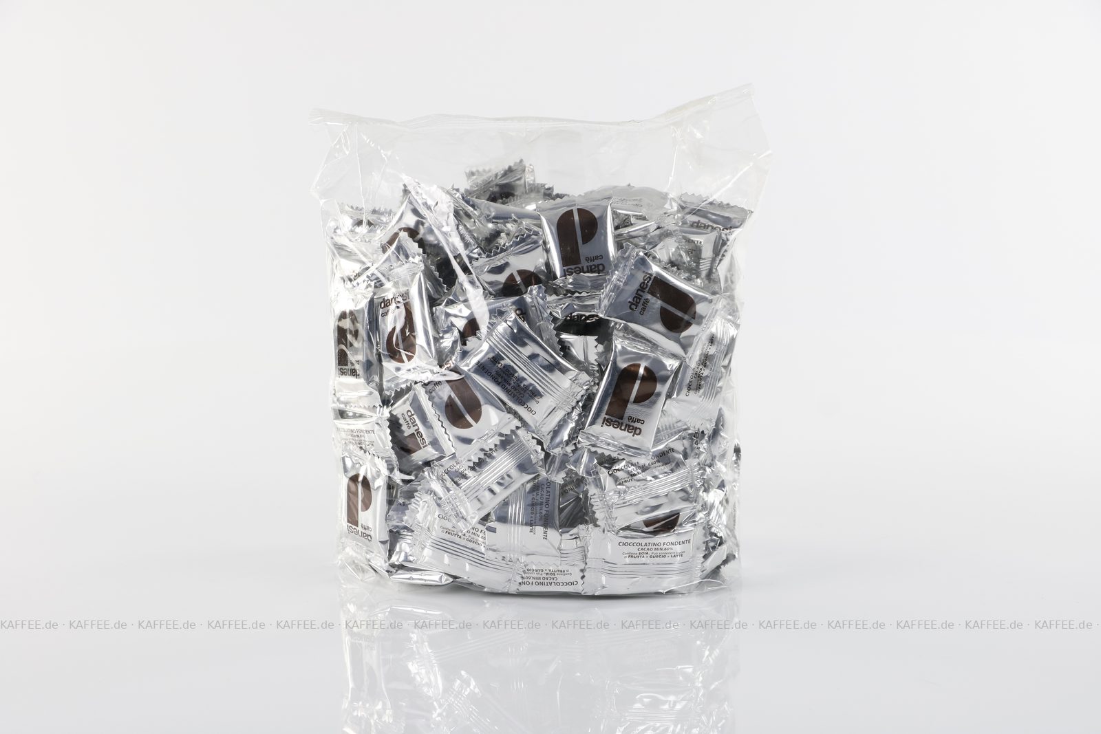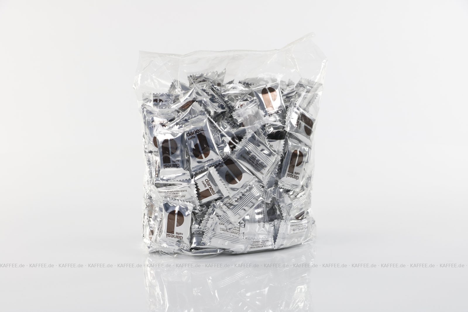 4 Bags je 1.000 g pro VPE, Gesamtinhalt 4,00 kg pro VPE Einzeln verpackte Täfelchen CIOCCOLATINO FONDENTE von DANESI mit mindestens 60% Kakaoanteil., EAN-Code: 2709000025980