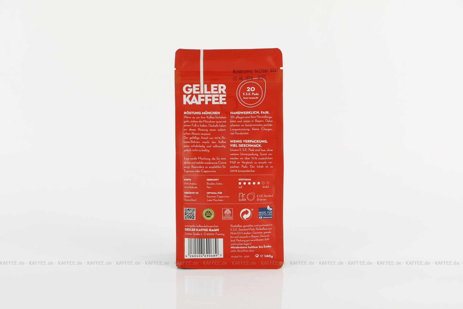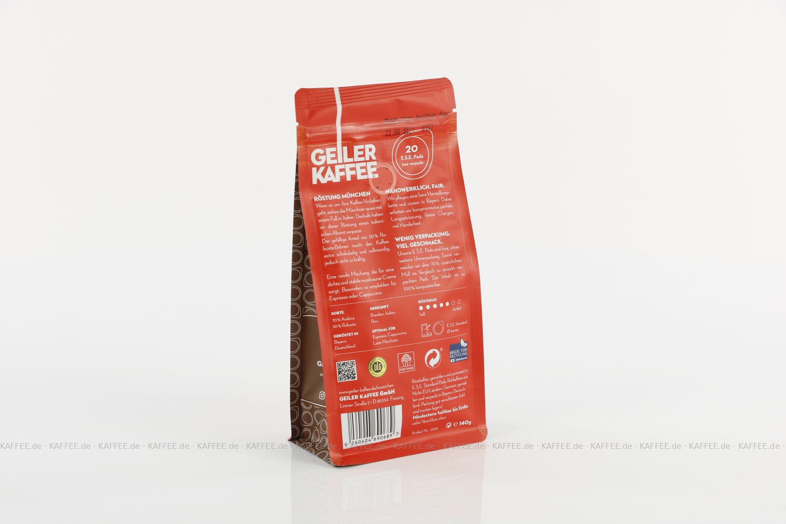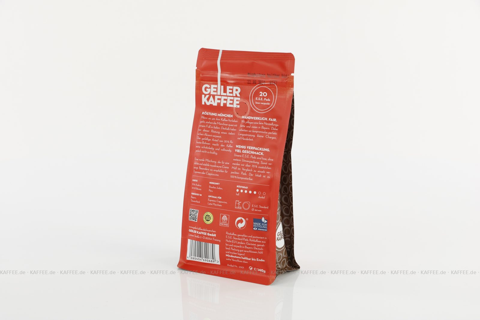 Artikel "GEILER KAFFEE Röstung MÜNCHEN 20x 20 ESE-Pads je 7 g gemahlen"