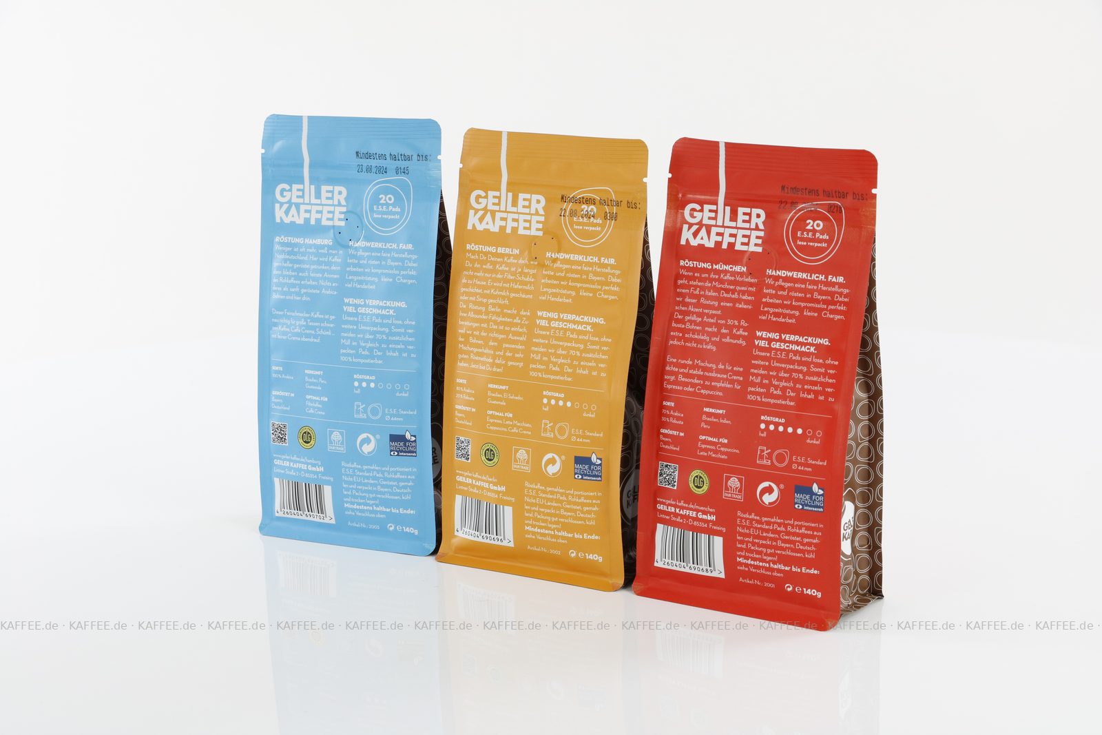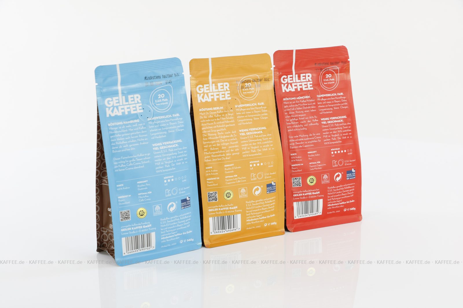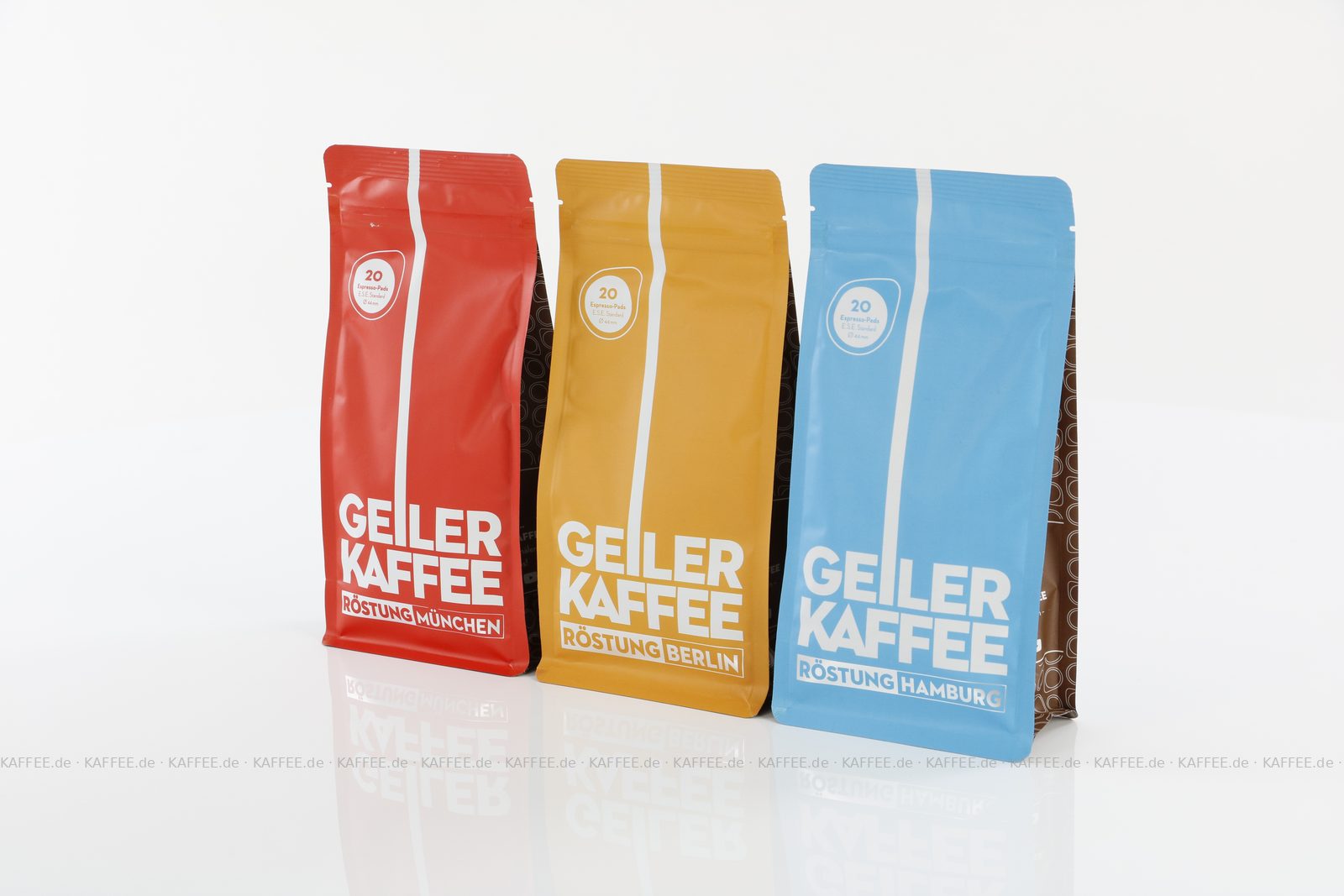 GEILER KAFFEE Probierpaket 3x 20 ESE-Pads 1x 20 ESE-Pads je 21 g gemahlen