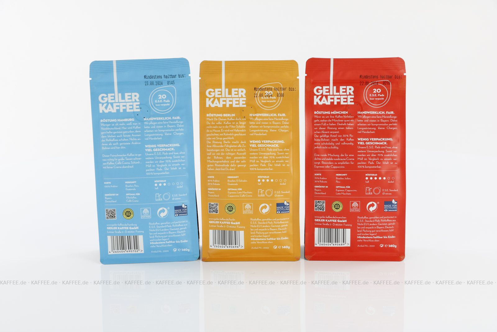 Artikel "GEILER KAFFEE Probierpaket 3x 20 ESE-Pads 1x 20 ESE-Pads je 21 g gemahlen"