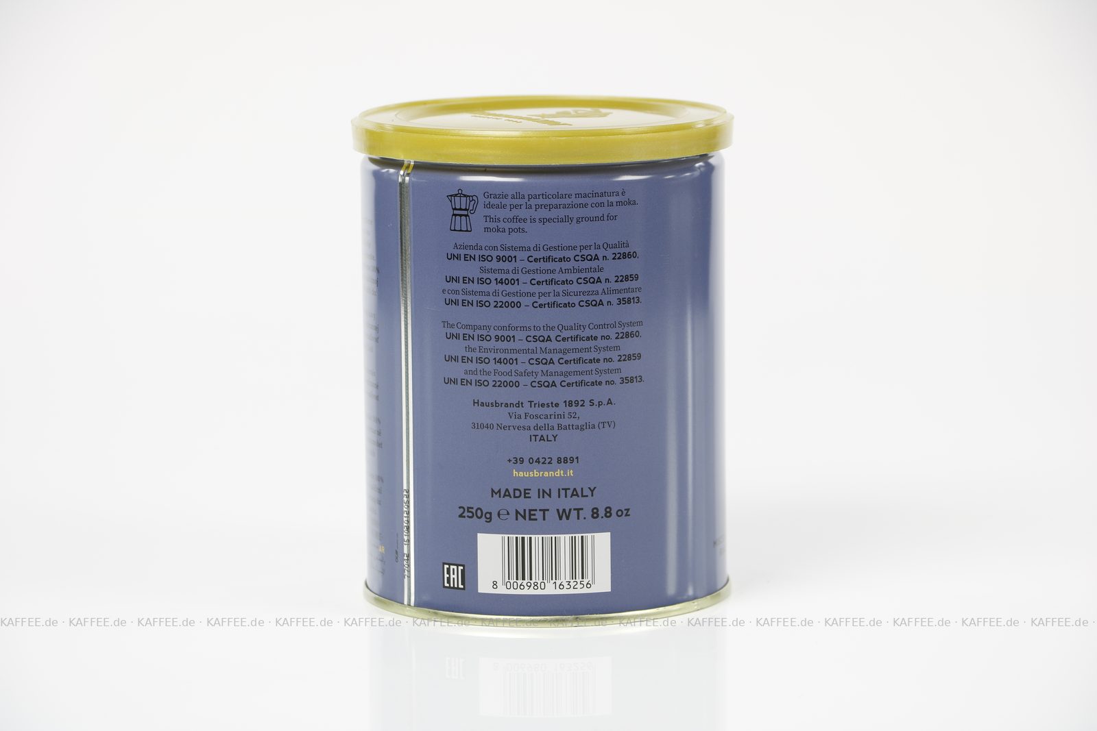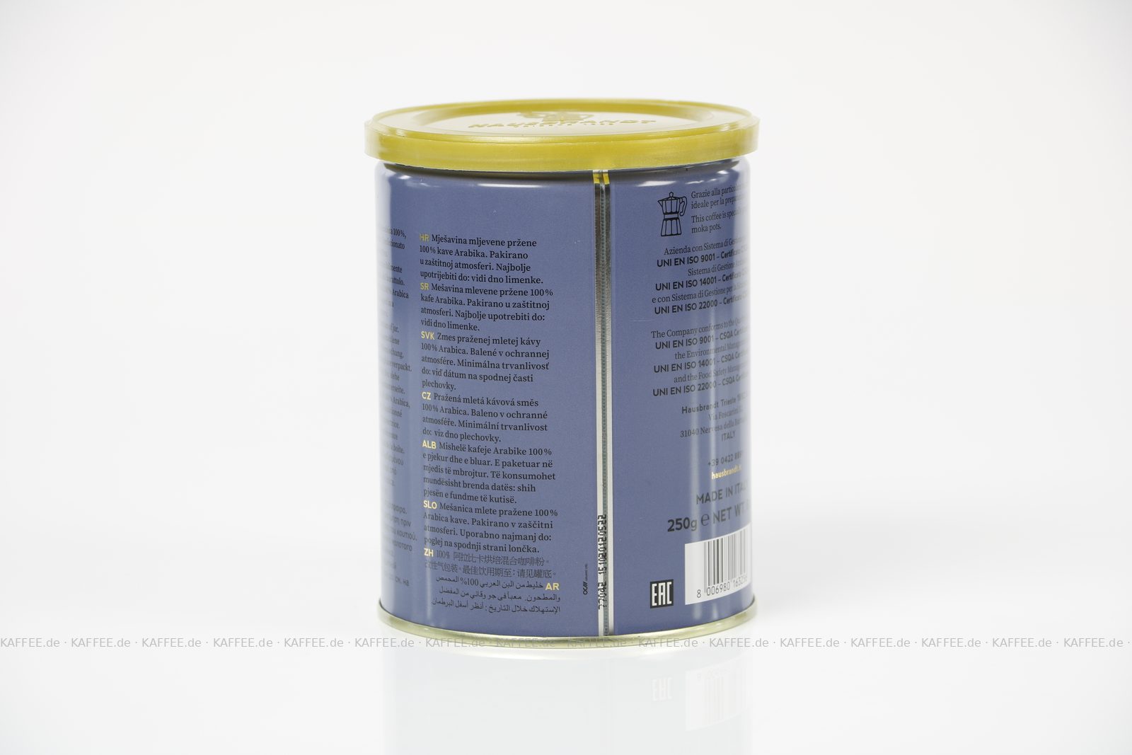 12 Dosen je 250 g pro VPE, gemahlen, Gesamtinhalt 3,00 kg pro VPE, EAN-Code: 8006980632059