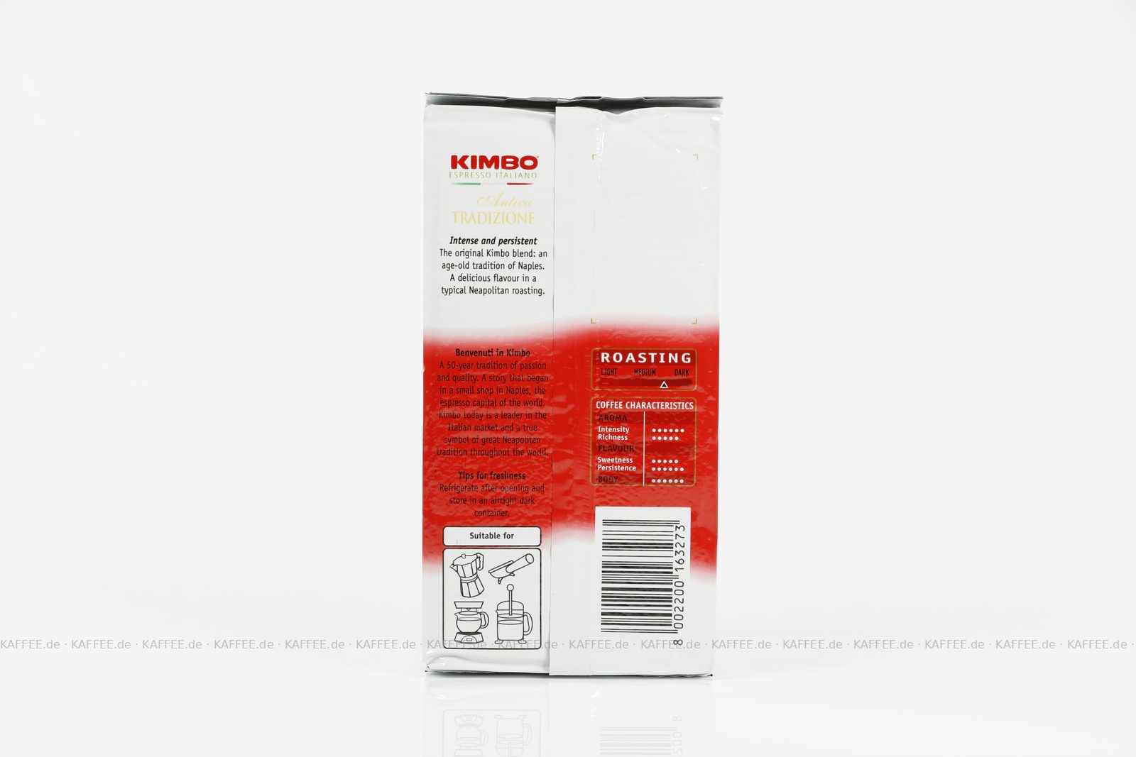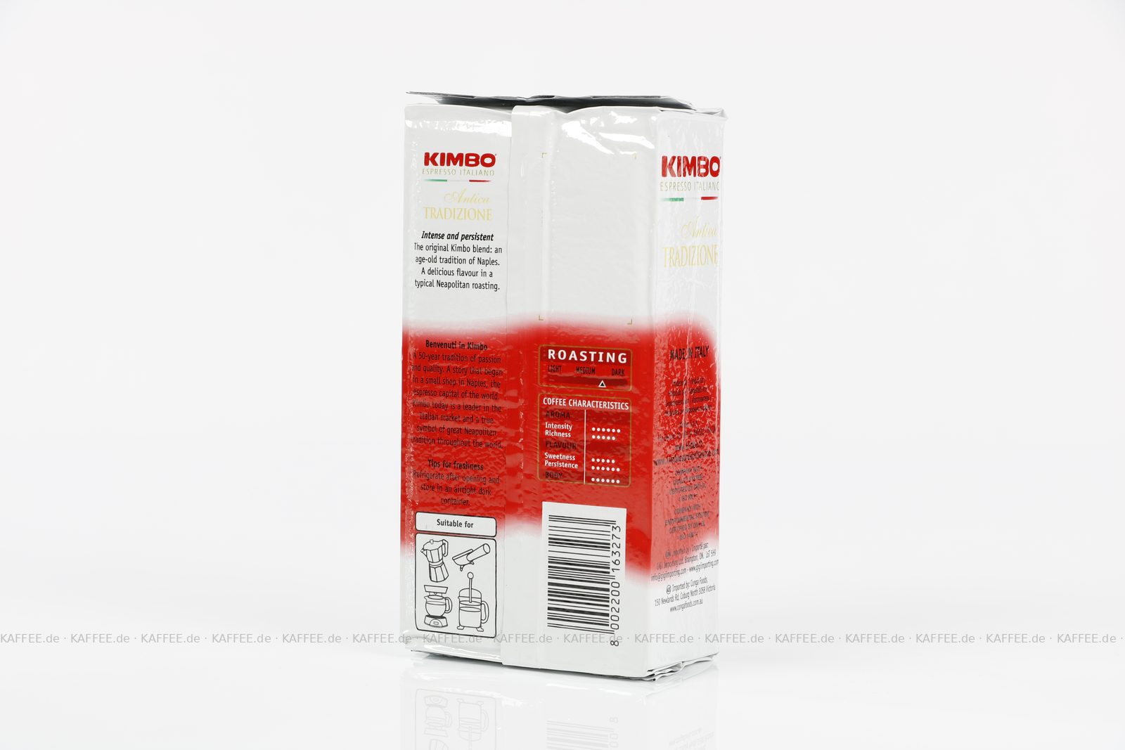 Heimisch in Neapel am Fuße des Vesuvs werden in einer einst kleinen traditionellen Rösterei die Bohnen des KIMBO Kaffees geröstet. Trotz der jüngsten Expansionen ins Ausland, bleibt KIMBO mit seiner Heimat eng verbunden und hat es mit diesem Mix zu einem erfolgreichen und internationalen Unternehmen geschafft, von dem hochrangige Gastronome schon seit langem überzeugt sind. Dank seines fairen Preis-Leistungsverhältnisses, darf KIMBO in keinem Kaffeesortiment fehlen.
