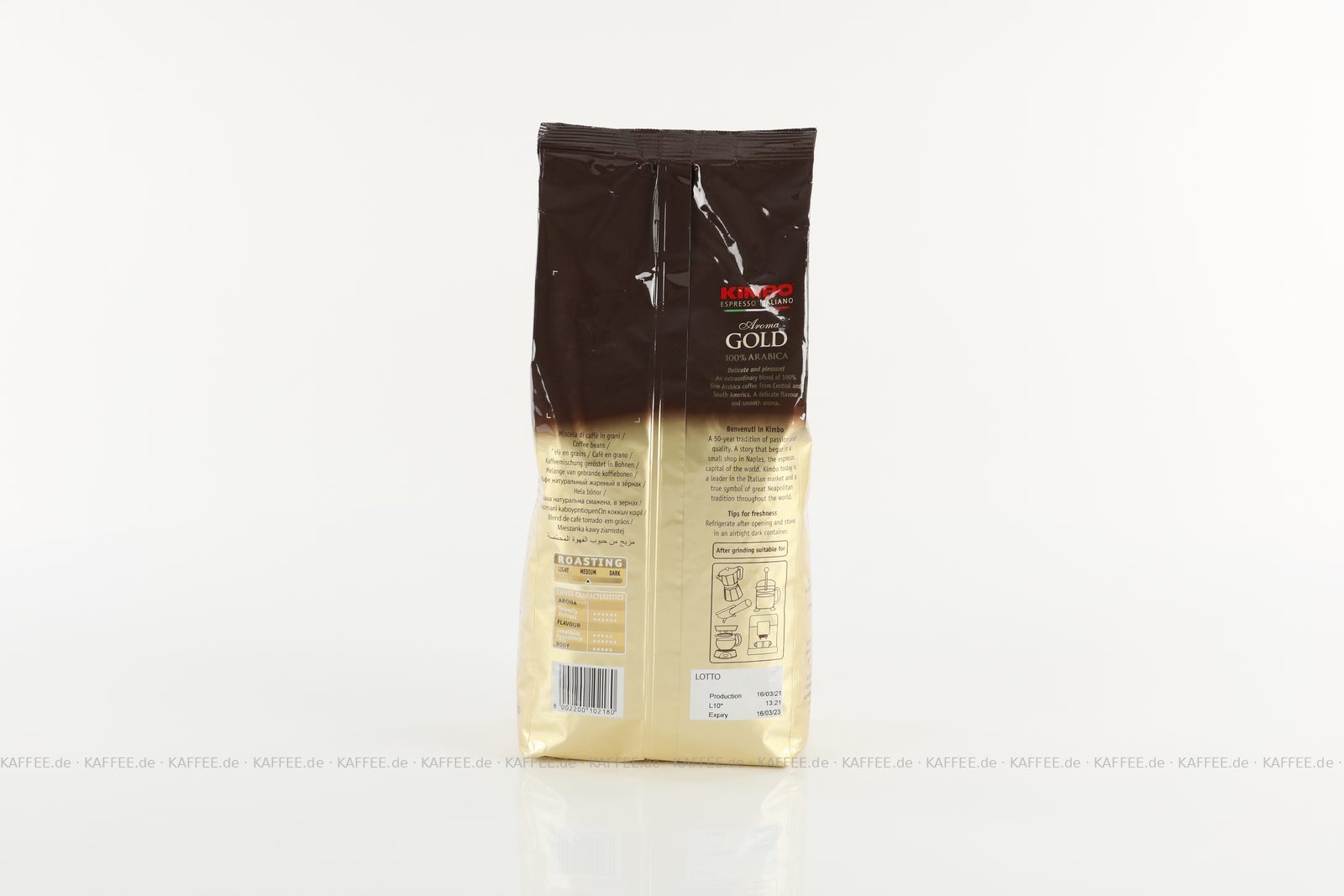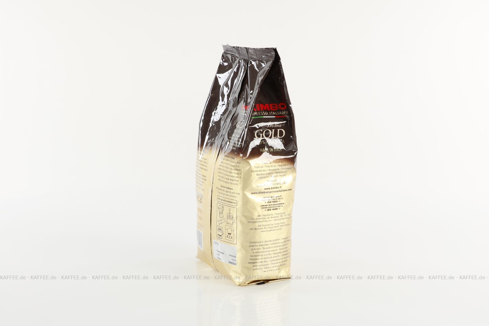 KIMBO Aroma Gold 100% Arabica 6x 1 kg Bohne Beutel