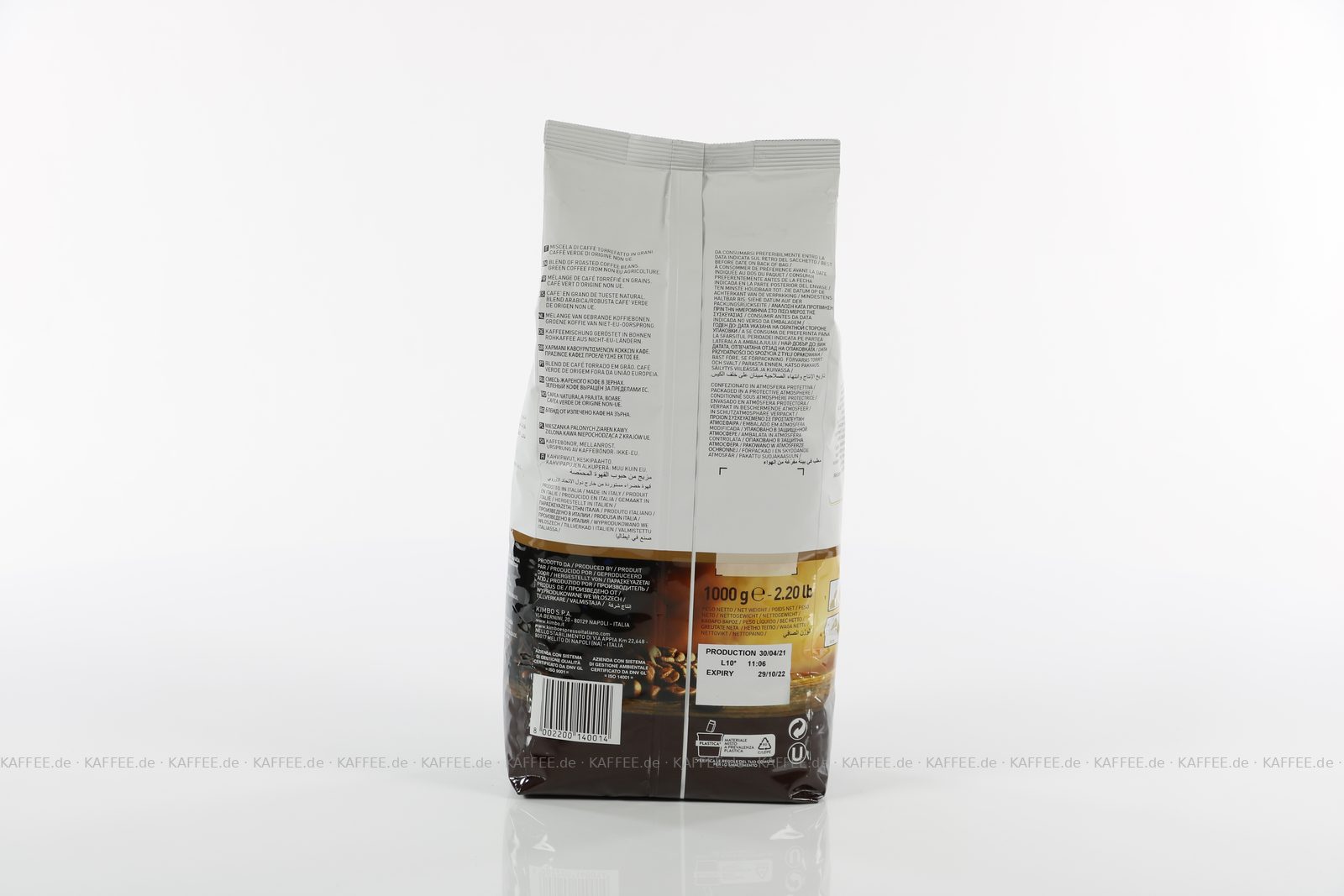 6 Bags je 1 kg pro VPE, Bohne, Gesamtinhalt 6,00 kg pro VPE, EAN-Code: 8002200140014