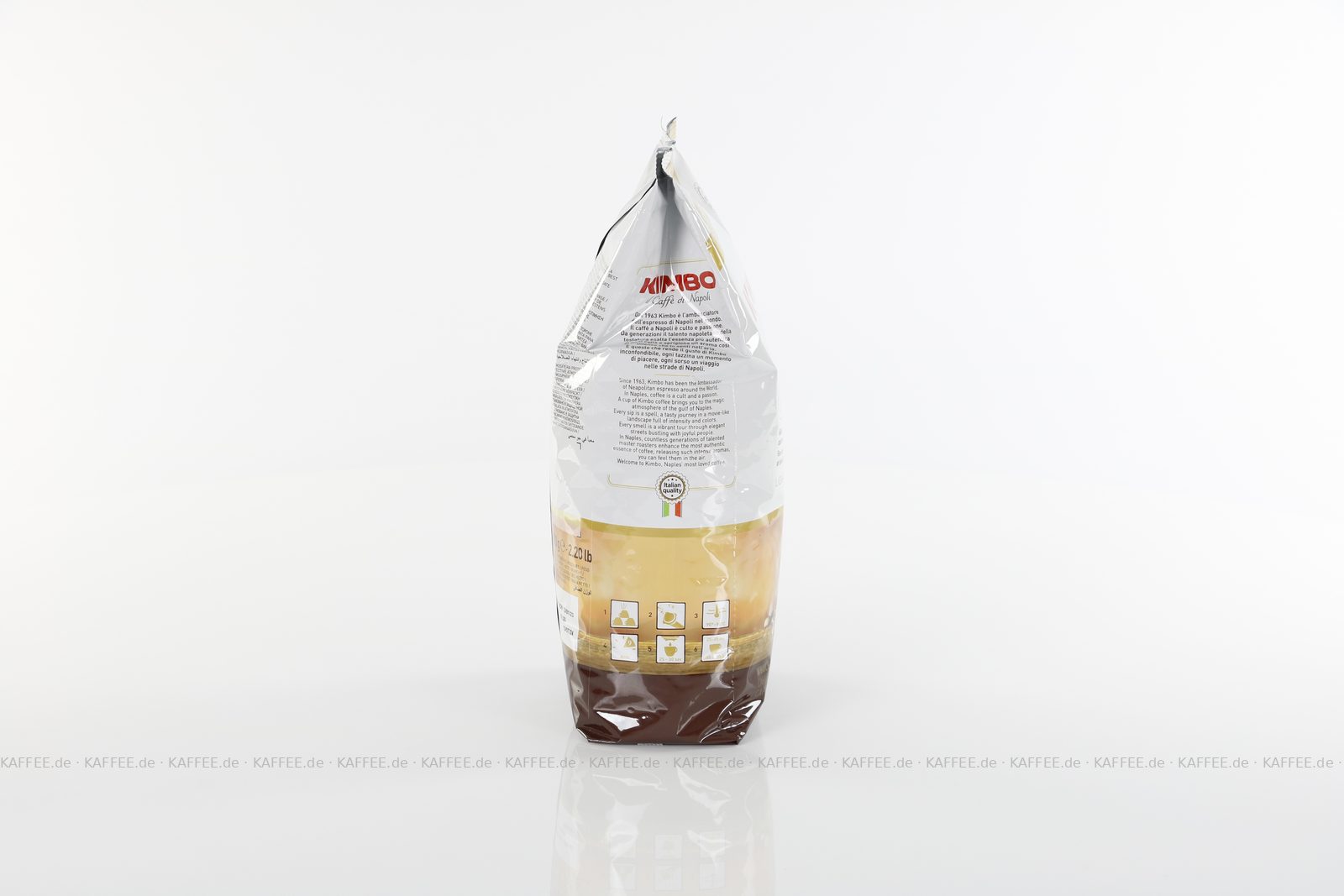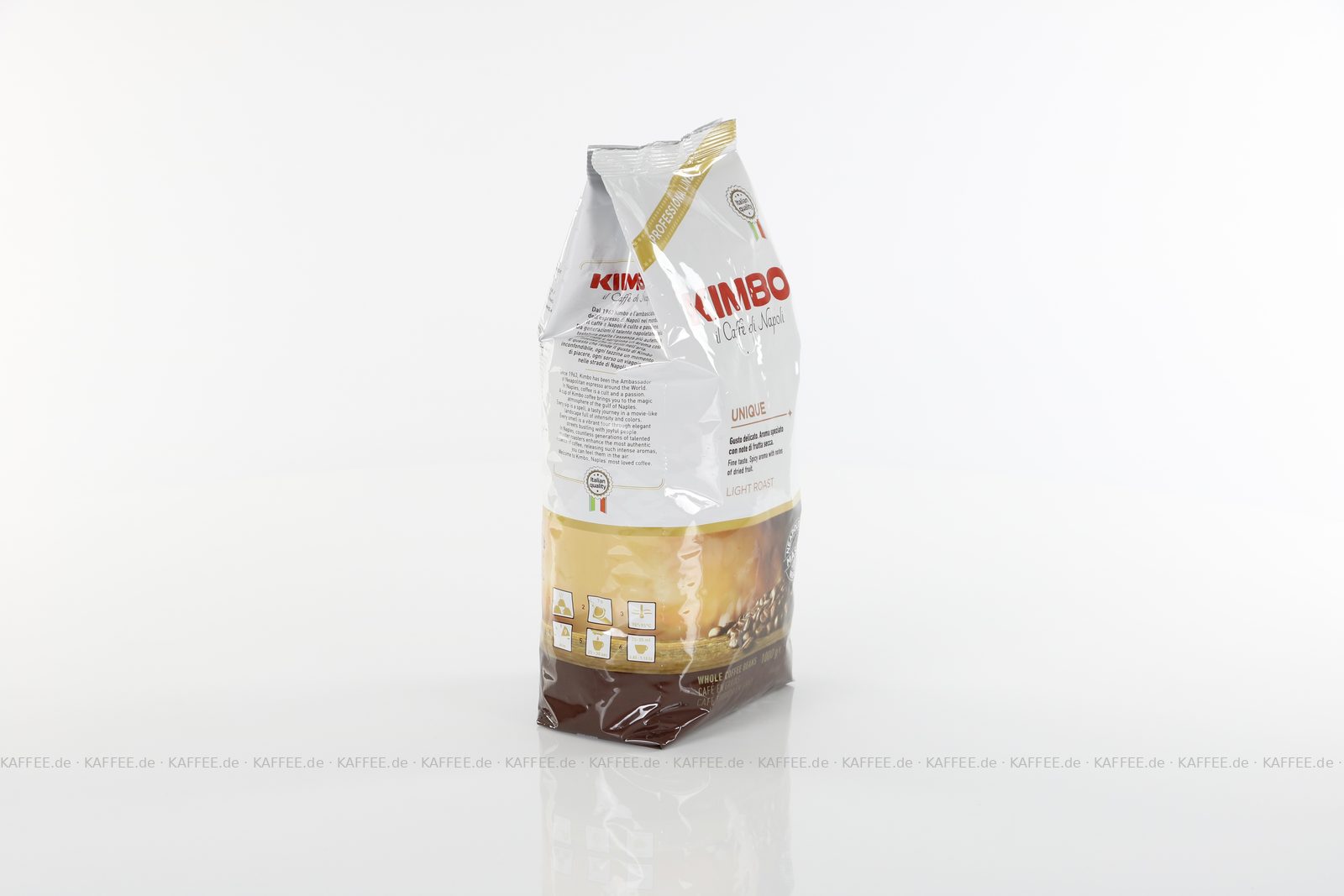 Heimisch in Neapel am Fuße des Vesuvs werden in einer einst kleinen traditionellen Rösterei die Bohnen des KIMBO Kaffees geröstet. Trotz der jüngsten Expansionen ins Ausland, bleibt KIMBO mit seiner Heimat eng verbunden und hat es mit diesem Mix zu einem erfolgreichen und internationalen Unternehmen geschafft, von dem hochrangige Gastronome schon seit langem überzeugt sind. Dank seines fairen Preis-Leistungsverhältnisses, darf KIMBO in keinem Kaffeesortiment fehlen.