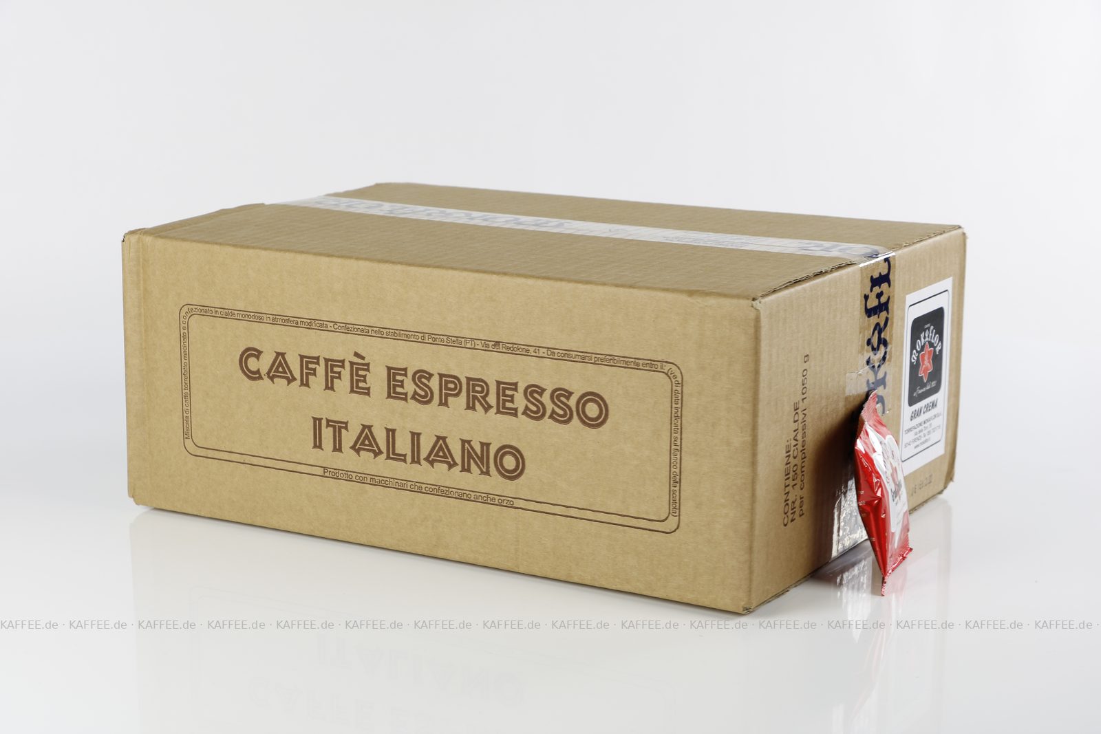 150 Pads je 7 g pro VPE, gemahlen, ESE-Standard 44 mm, Gesamtinhalt 1,05 kg pro VPE, EAN-Code: 8006987411664