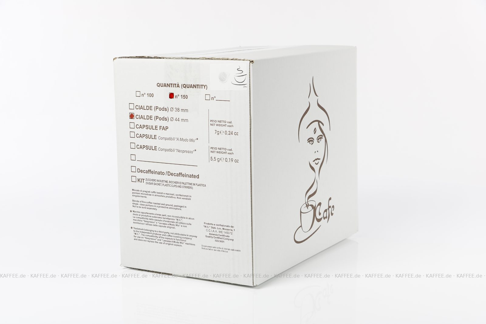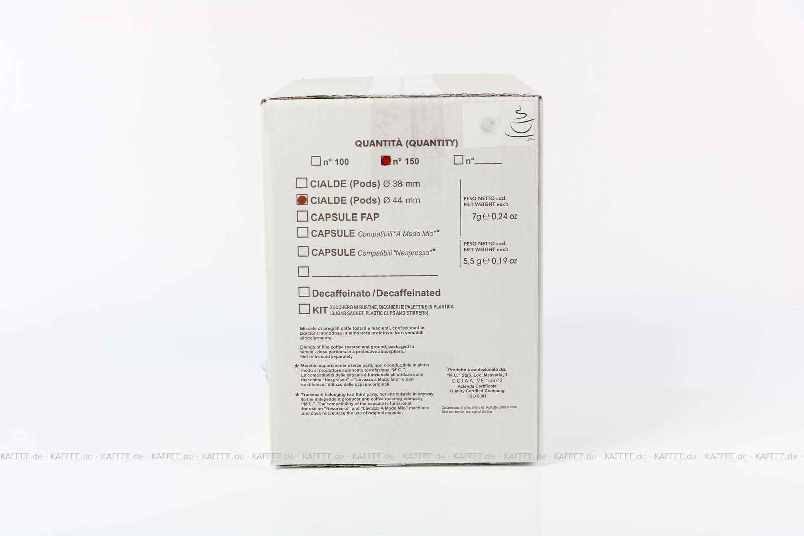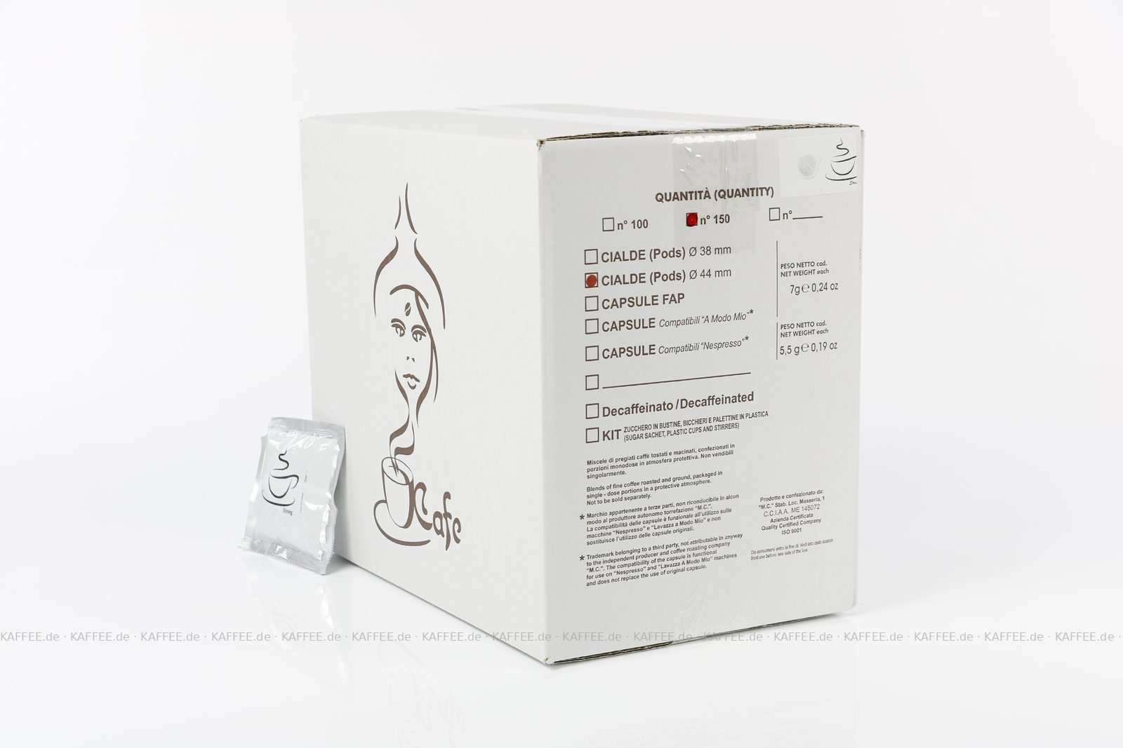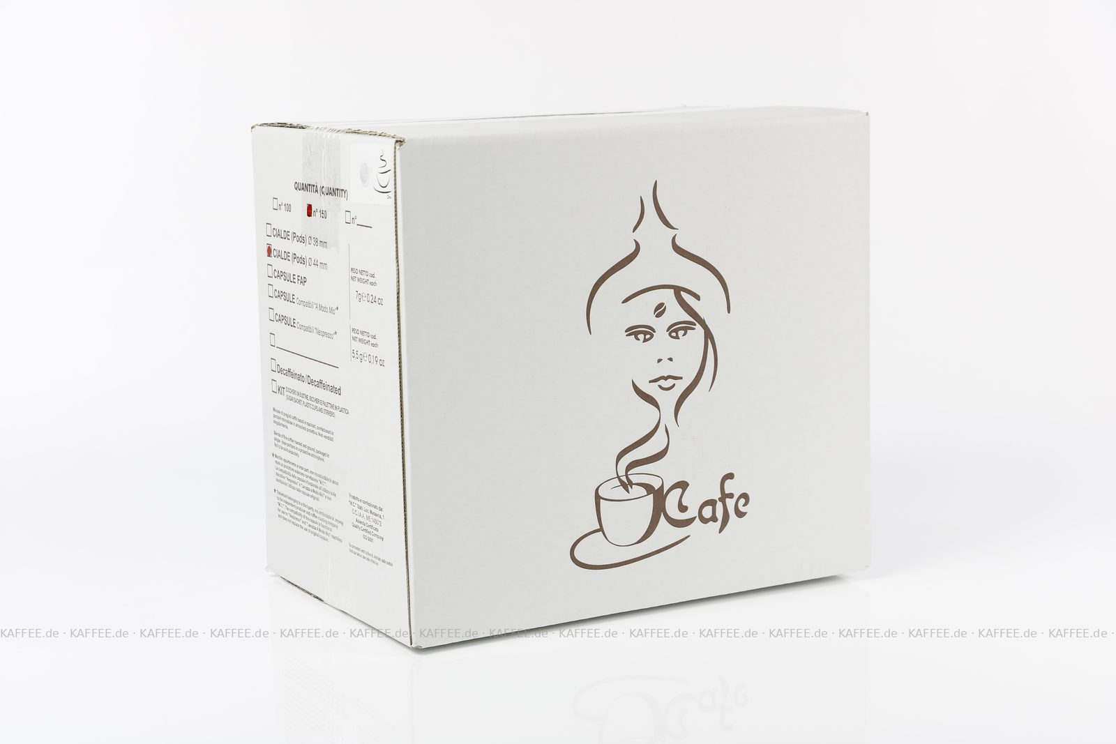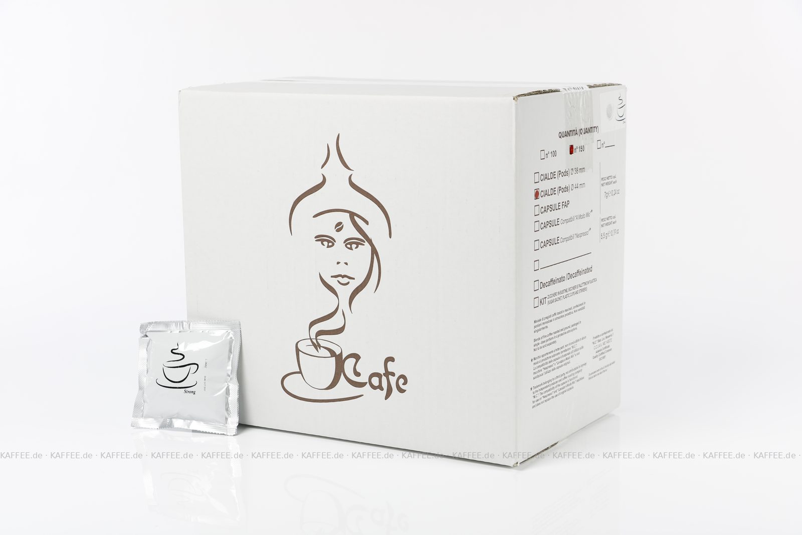 150 Pads je 7 g pro VPE, gemahlen, ESE-Standard 44 mm, Gesamtinhalt 1,05 kg pro VPE, EAN-Code: 2709000023085