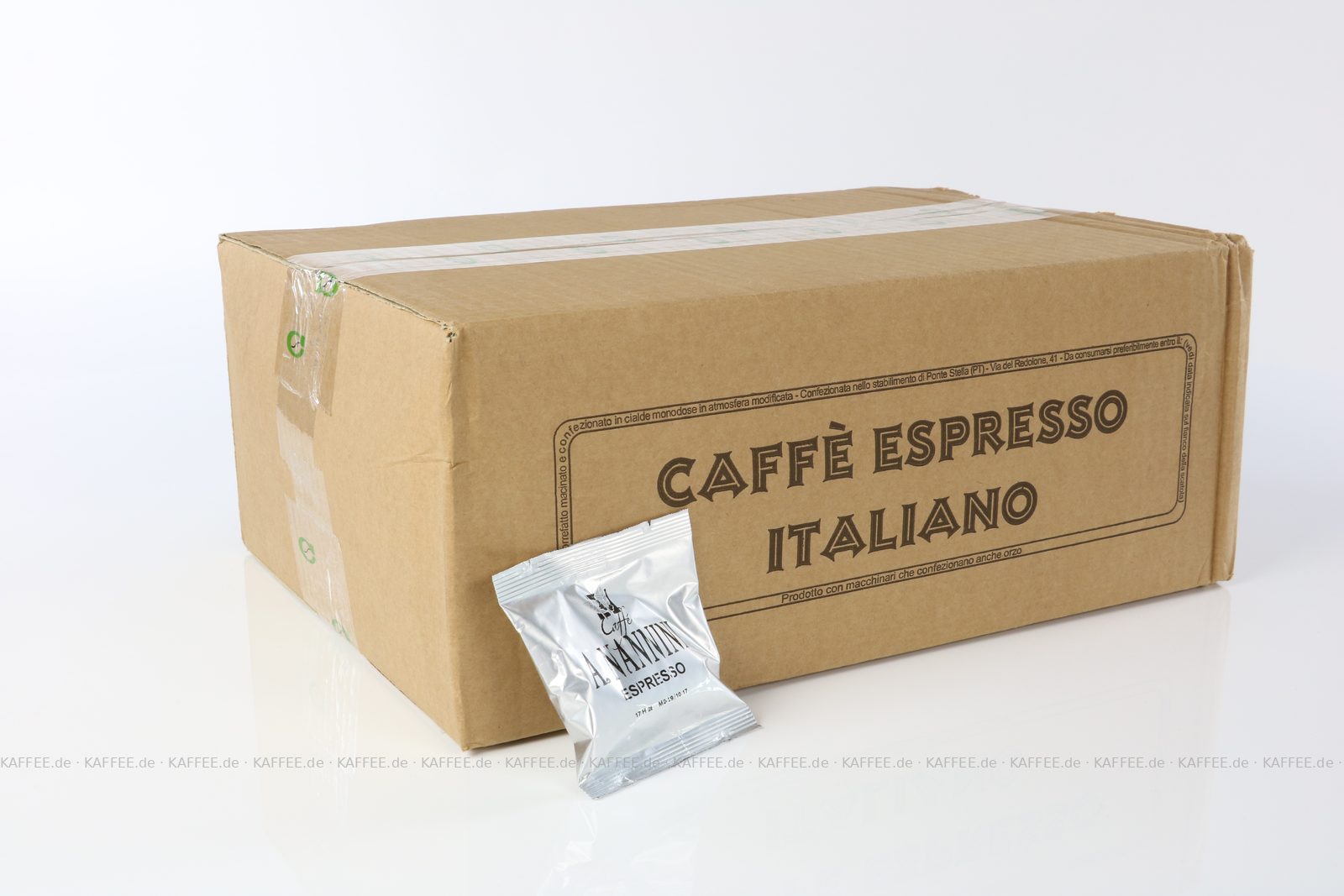150 Pads je 7 g pro VPE, gemahlen, ESE-Standard 44 mm, Gesamtinhalt 1,05 kg pro VPE, EAN-Code: 8019247000331