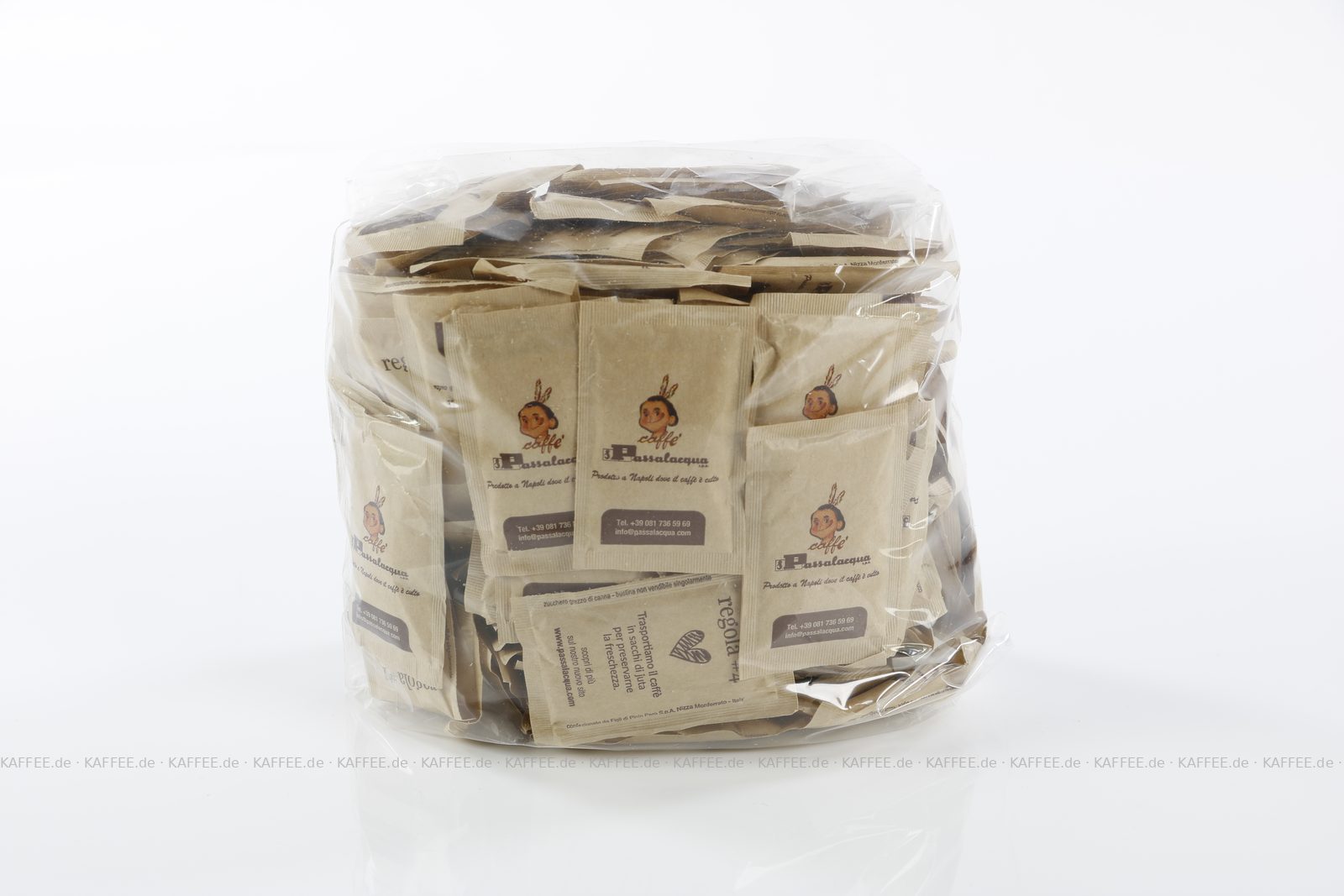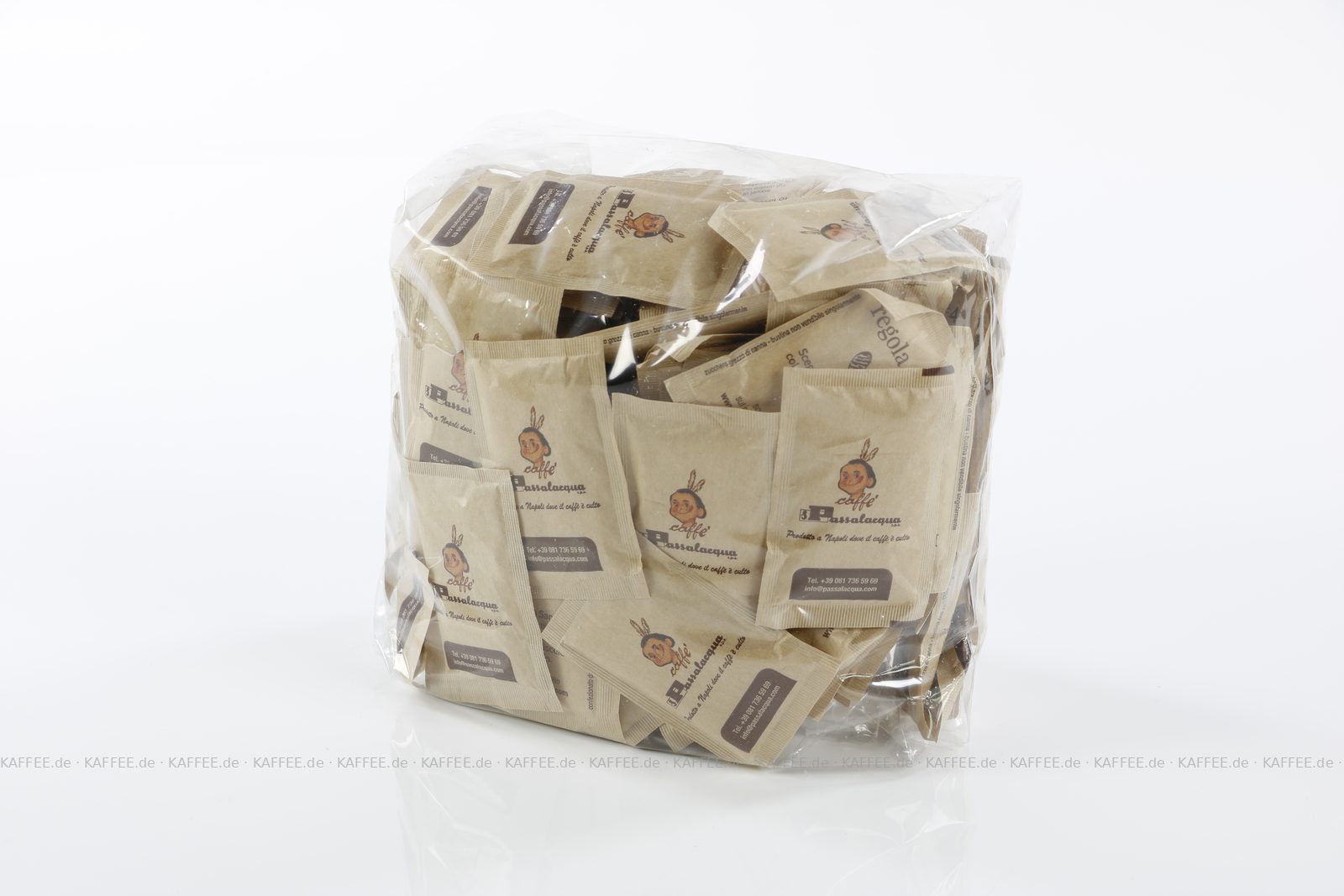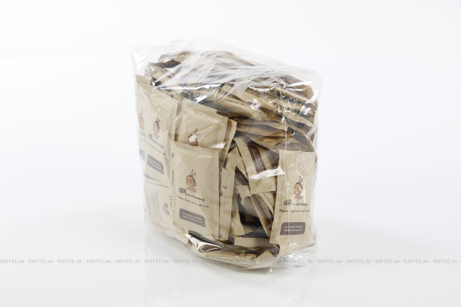 Zuckerpäckchen bedruckt mit PASSALACQUA-Logo, brauner Zucker, 5kg mit ca. 1.000 Päckchen pro VPE, Gesamtinhalt ca. 5 kg pro VPE, EAN-Code: 2709000018395