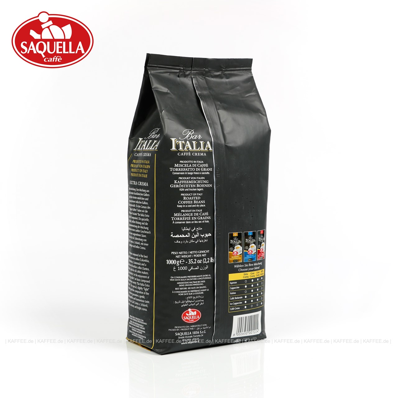 Artikel "SAQUELLA Bar Italia - Caffé Crema - Extra Crema 8x 1 kg Bohne Beutel"