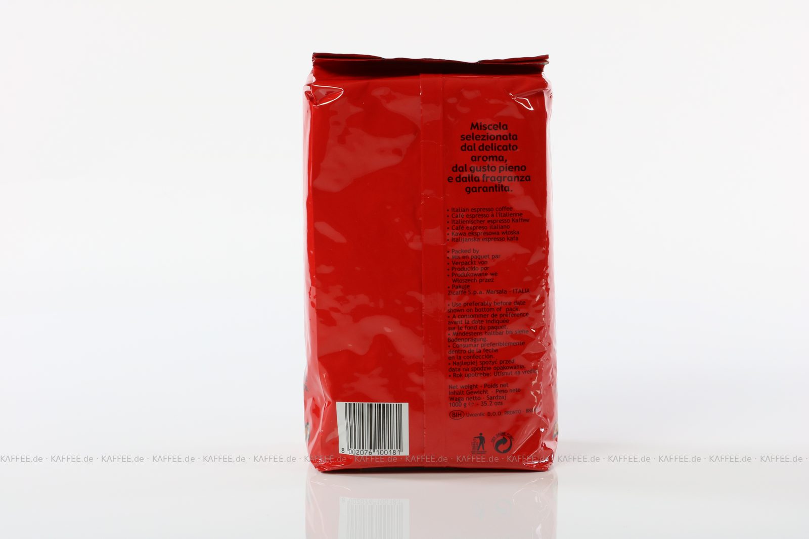 6 Bags je 1 kg pro VPE, Bohne, Gesamtinhalt 6,00 kg pro VPE, EAN-Code: 8002076100181