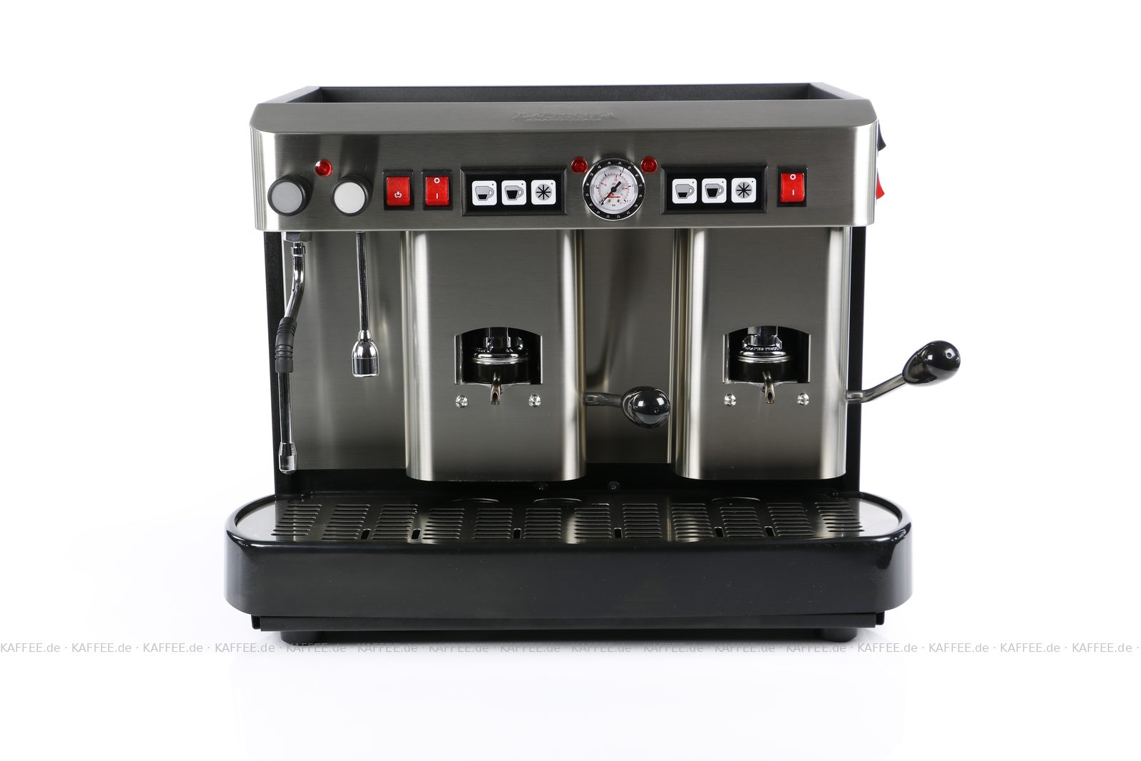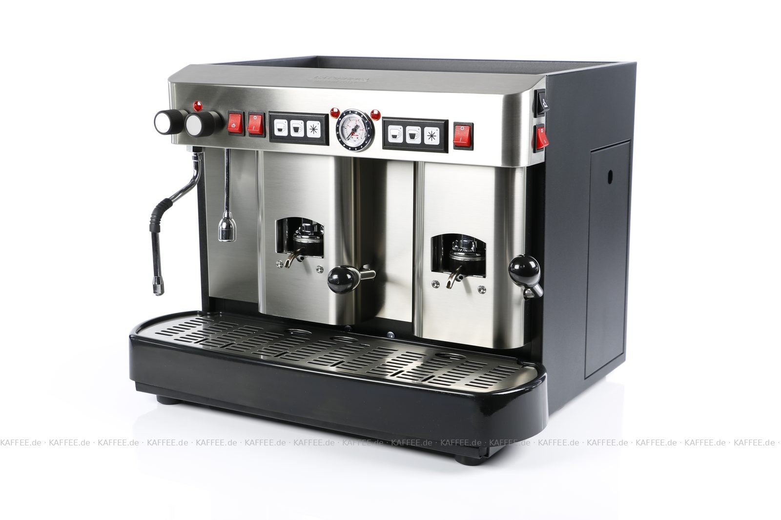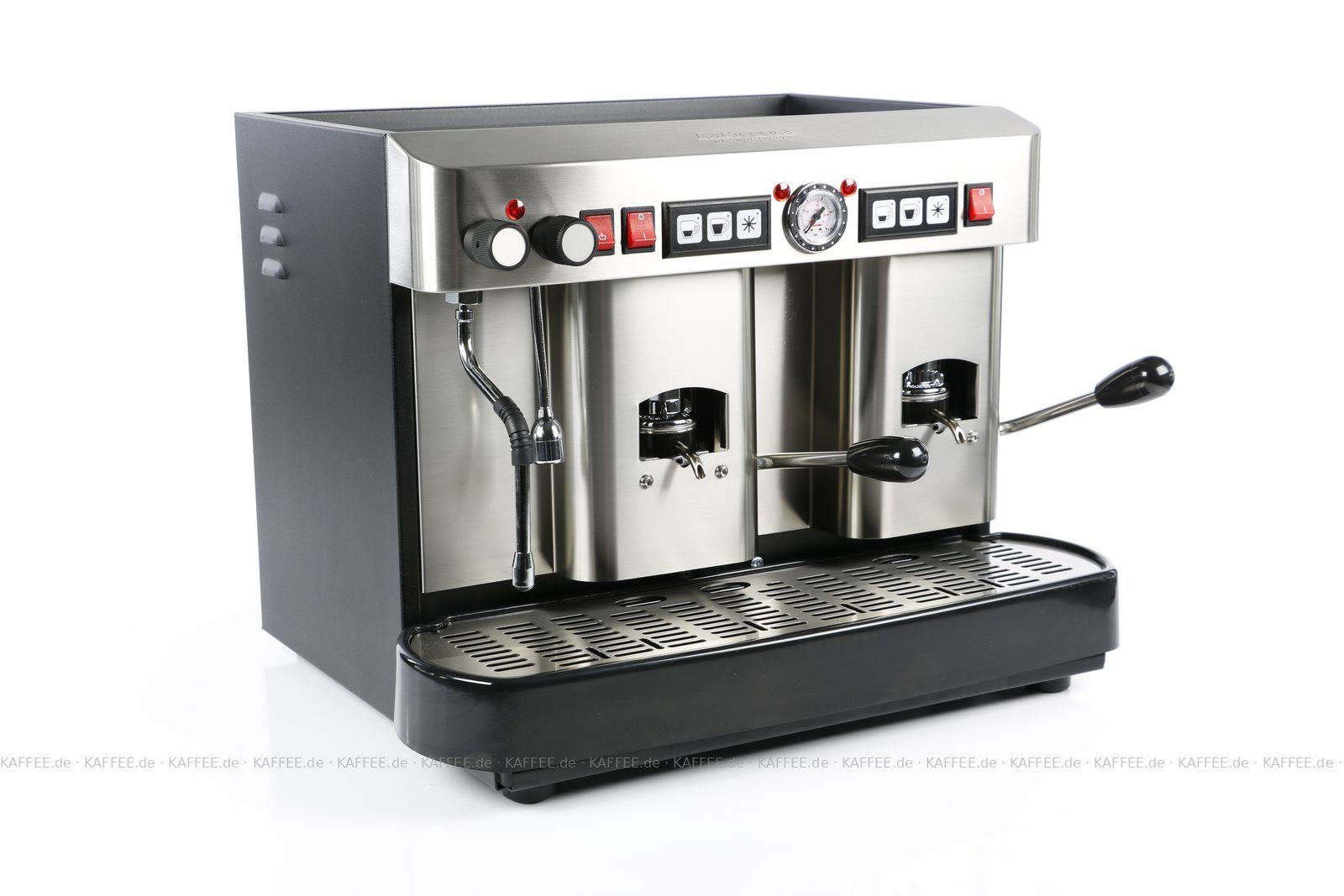 Espressomaschine für ESE-Pads (44 mm Standardpads) mit zwei Brühgruppen (7g/7g), automatische Dosierung, Edelstahl mit schwarzen Seitenteilen, Milchaufschäumer und Wassertank Diese Maschine ist in weiteren Ausführungen erhältlich: zum Beispiel mit anderen Brühgruppen - 14g Pads, automatischer Dosierung, in andere Farben und auch mit Festwasseranschluss. Sprechen Sie uns an, bzw. Wählen Sie einen anderen Artikel!, EAN-Code: 8021103700262