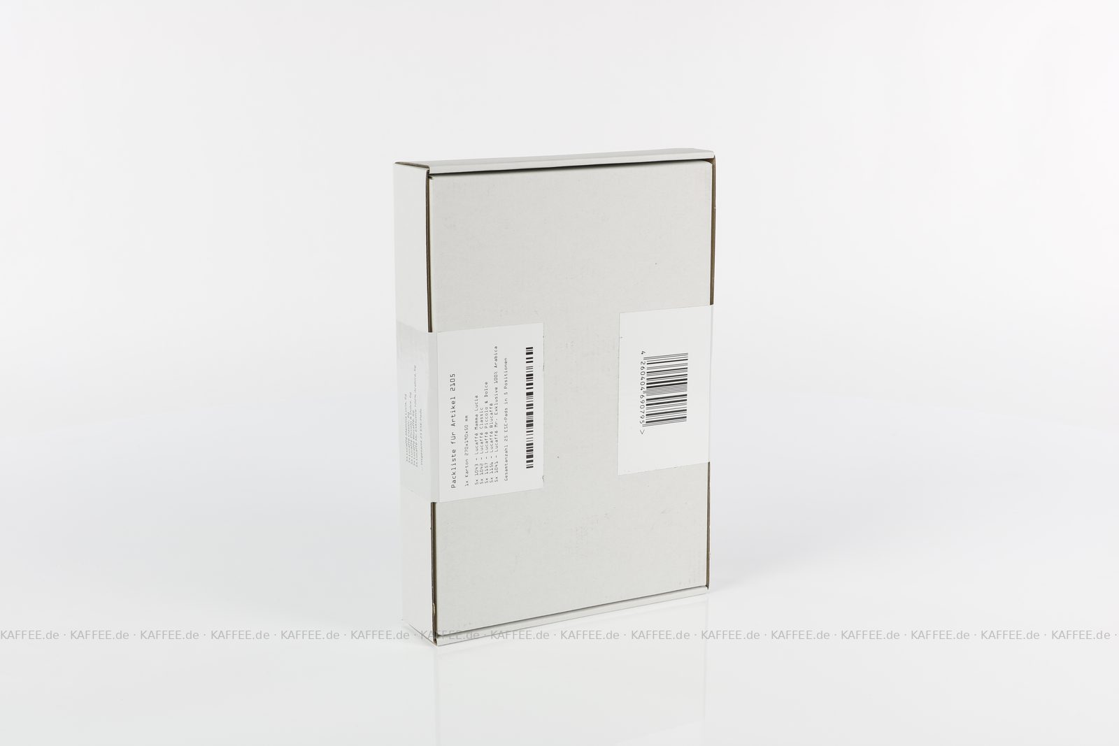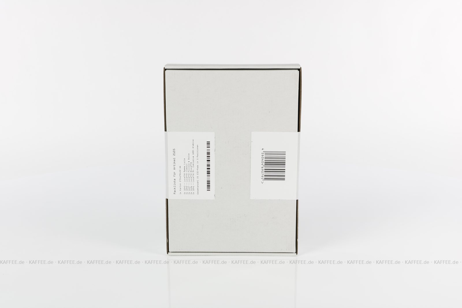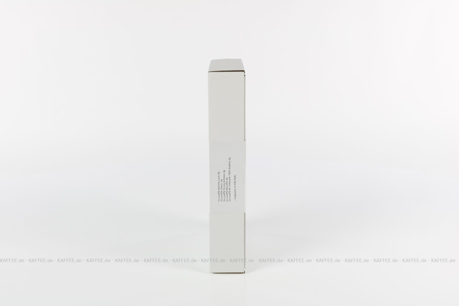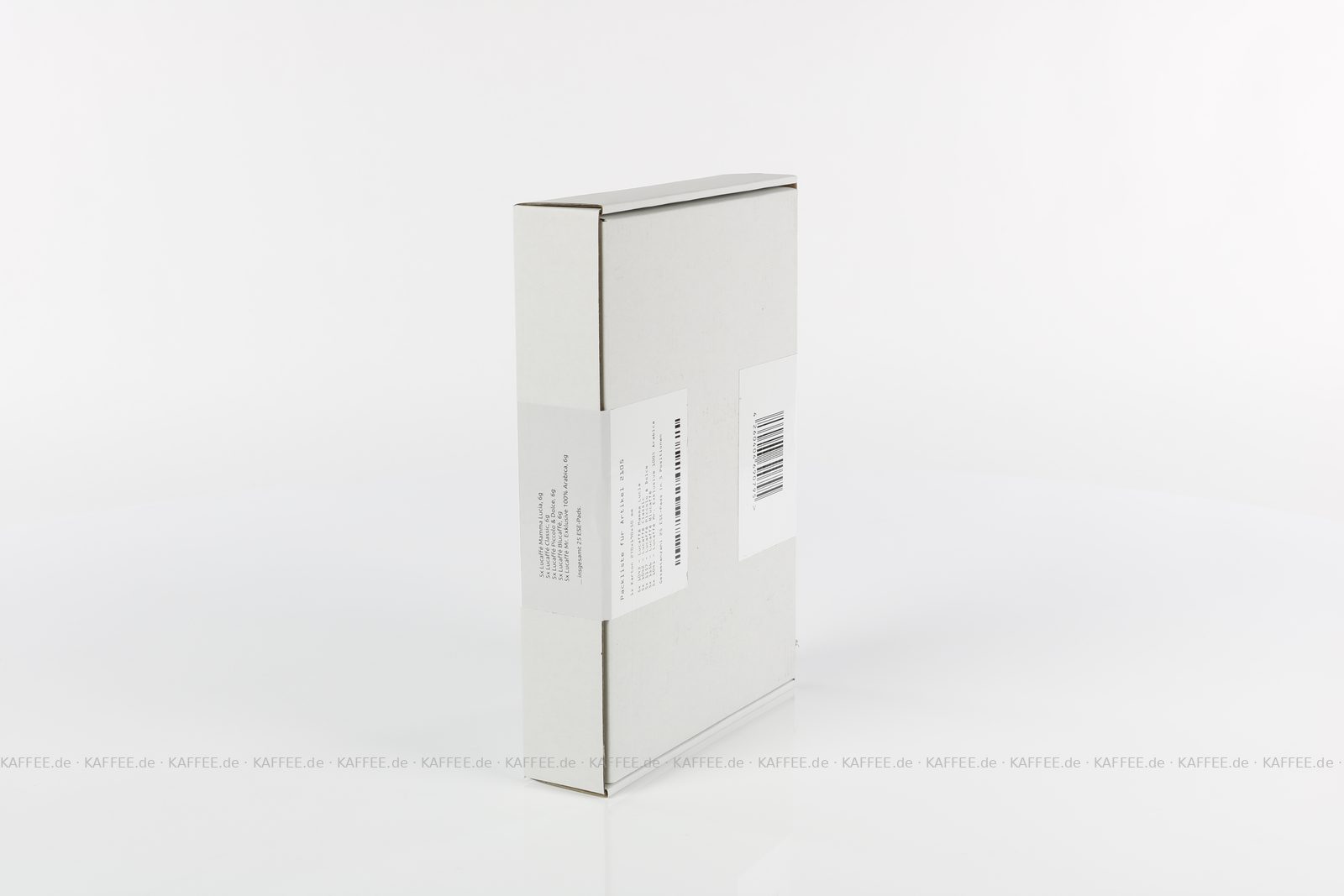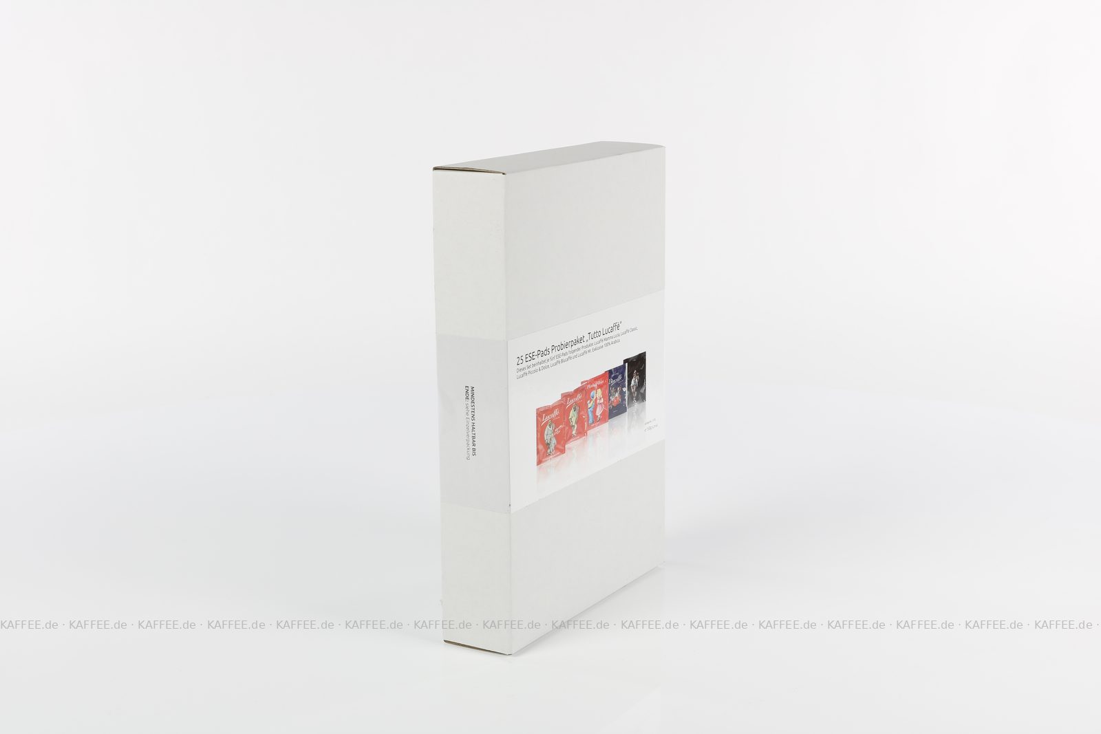 25 Pads je 6 g pro VPE, gemahlen, ESE-Standard 44 mm, Gesamtinhalt 150 g pro VPE Das Set beinhaltet je fünf ESE-Pads folgender Produkte: Lucaffé Mamma Lucia (1043), Lucaffé Classic (1042), Lucaffé Piccolo & Dolce (1157), Lucaffé Blucaffè (1156) und Lucaffé Mr. Exklusive 100% Arabica (1041)., EAN-Code: 4260404690795